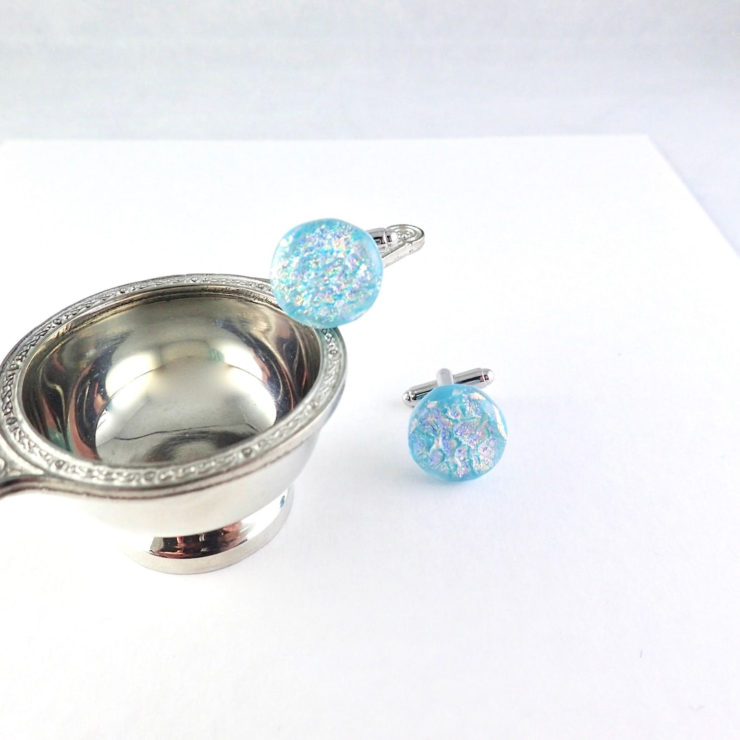 Manschettenknöpfe Herren Blau Mit Weltkugel Design - Messing 25mm Mit Aufbewahrungsbox