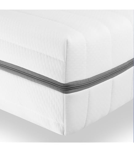 Zwei Matratzen in einer - je nach Laune! Diese cleveren ESSENCE SLEEP Wendematratze bietet dir zwei verschiedene Härtegrade: eine Seite weich (H2) für Seitenschläfer und eine Seite mittelfest (H3) für Rückenschläfer. Einfach wenden und du hast einen komplett anderen Liegekomfort! Mit 18 cm Höhe und 90x200 cm Standardmaß passt sie in die meisten Bettgestelle. Der atmungsaktive Bezug aus Air-Fleece-Baumwolle ist super weich und hautfreundlich. Perfekt für Allergiker - der Bezug ist bei 40°C waschbar und mit Reißverschluss einfach abzunehmen. Hergestellt in Europa mit luxuriösem weiß-goldenem Band für eine edle Optik. Als praktische Rollmatratze geliefert, die sich innerhalb von 48 Stunden komplett entfaltet. Der elastische Kern sorgt für lange Lebensdauer und perfekte Anpassung an deine Körperform. Ob alleine oder zu zweit - mit dieser Matratze findest du garantiert deine optimale Schlafposition!