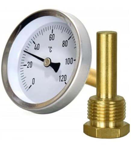 Willst du immer im Blick haben, wie warm deine Heizungsrohre oder Warmwasserleitungen wirklich sind? Mit diesen zwei Rohrthermometern von Weploda geht das ganz easy! Einfach mit der mitgelieferten Feder um das Rohr clipen - schon zeigt dir das robuste Edelstahl-Thermometer zuverlässig die Temperatur zwischen 0 und 120°C an. Super praktisch, um Überhitzung zu vermeiden oder einfach nur zu checken, ob alles rund läuft. Das Gehäuse aus Edelstahl 304 ist rostfrei, wasserdicht und hält auch in feuchten Kellern problemlos stand. Die Skala ist gut lesbar, die Zeigerbewegung smooth und präzise. Mit den beiden Federn passt das Thermometer an Rohre verschiedener Durchmesser, von schmalen Zuleitungen bis zu dickeren Verteilerrohren. Ideal für Heizungsanlagen, Warmwasserbereiter, Klimaanlagen oder auch in der Industrie. Du musst kein Profi sein, um es zu montieren - einfach rumwickeln, festhaken und fertig! Die Federn sind stark genug, um sicher zu halten, aber nicht so stark, dass du Werkzeug brauchst. Jedes Thermometer misst etwa 63x63 mm und ist damit kompakt, aber gut ablesbar. Mit beiden Thermometern im Set kannst du zum Beispiel Vor- und Rücklauf gleichzeitig überwachen. Einfach, clever und verdammt nützlich! Endlich weißt du Bescheid, was in deinen Rohren los ist.