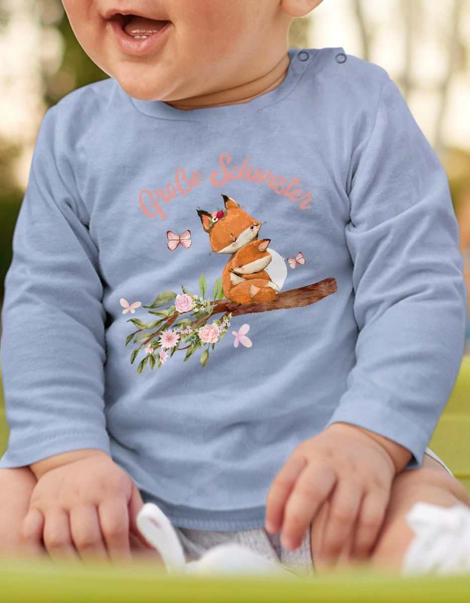 Baby Body Langarm - Ich Werde Eine Große Schwester Mit Füchsen