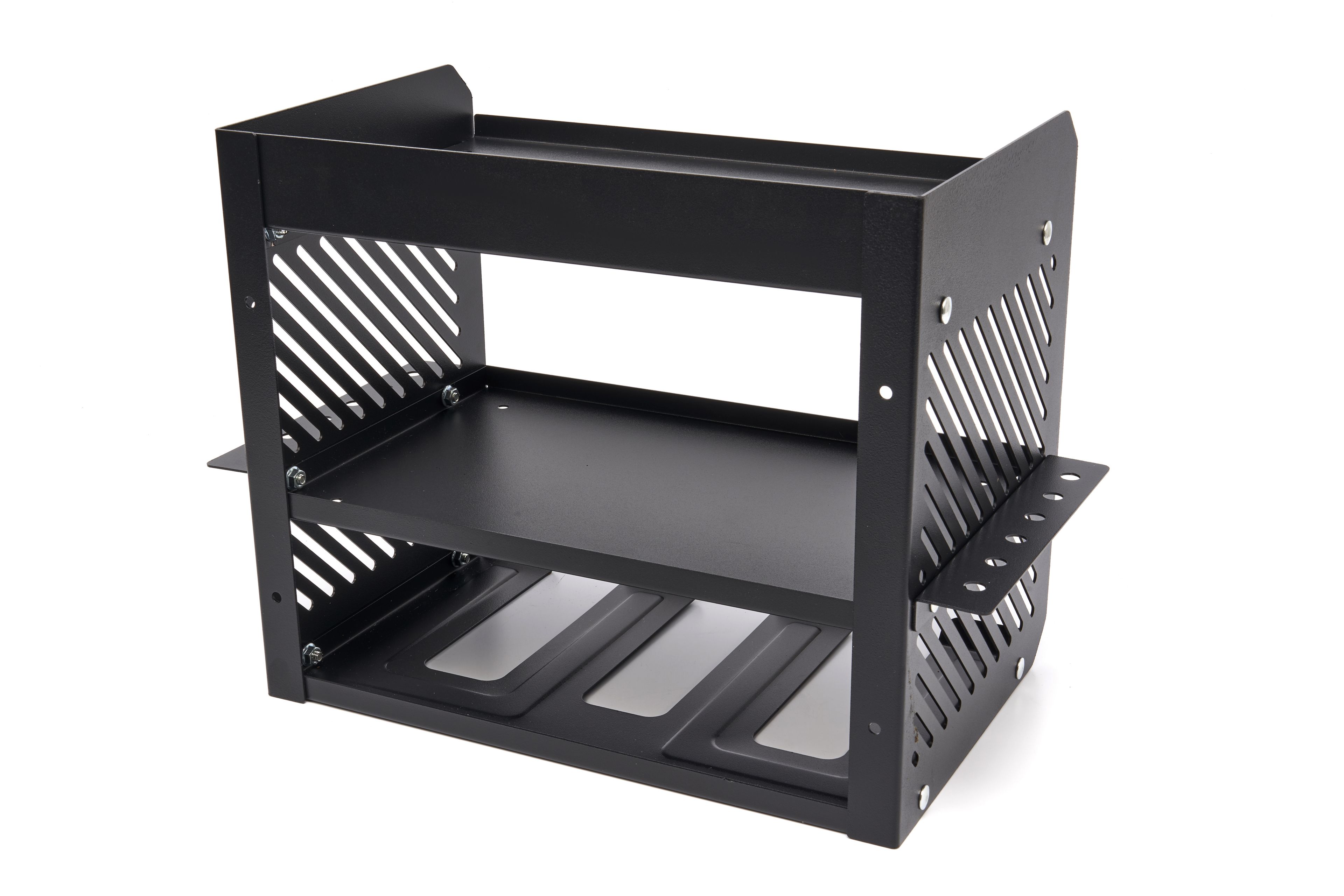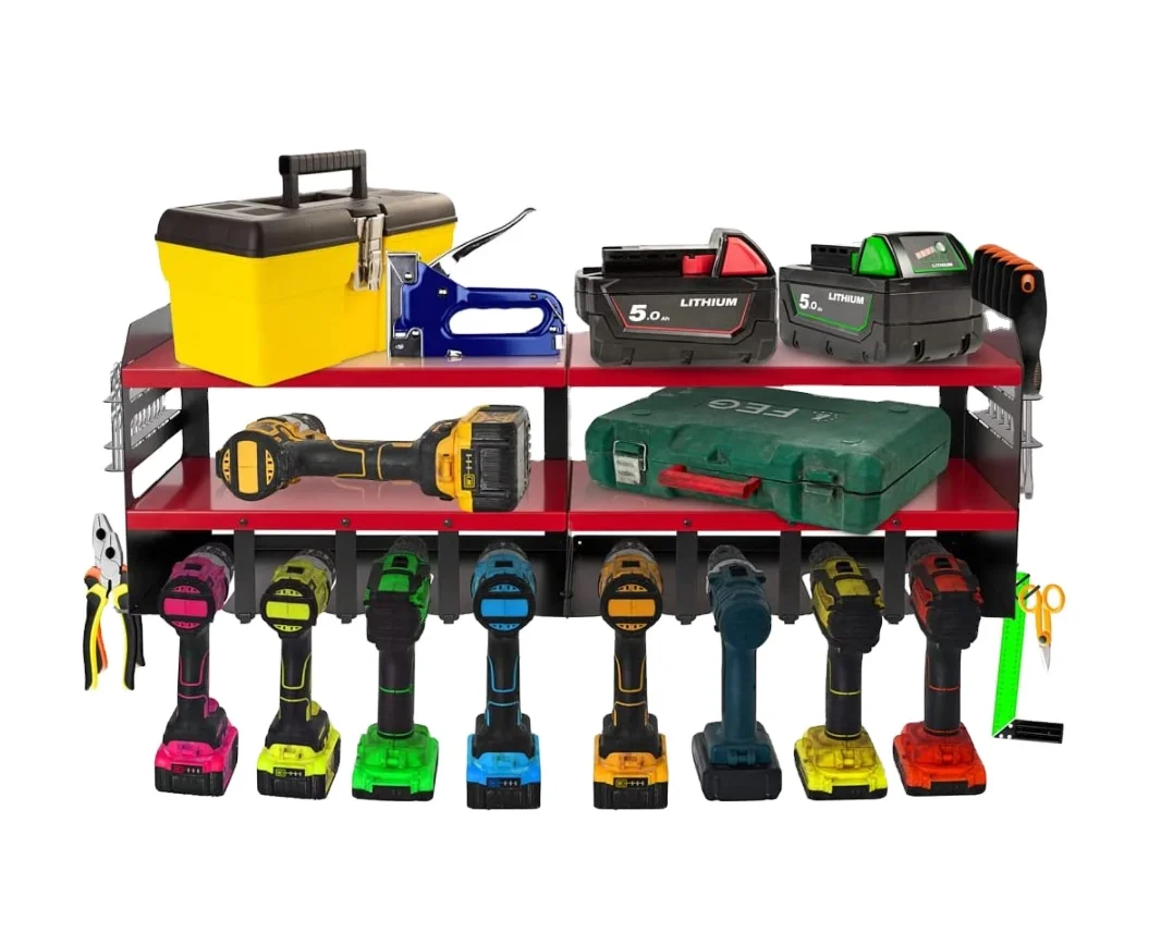 Ordnung im Werkzeugchaos! Dieser Bohrerhalter von Wall Control ist genau das, was du brauchst, um deine Bohrmaschinen und Akkus ordentlich zu verstauen. Aus robustem Stahl gefertigt, hält er auch schwerere Geräte problemlos aus. Das clevere Design bietet Platz für bis zu 3 Bohrmaschinen oder andere Elektrowerkzeuge - plus zusätzliche Ablage für Ersatz-Akkus. Die Halterung hat drei 8,9 cm tiefe Öffnungen, die die meisten gängigen Bohrmodelle sicher aufnehmen. An den Seiten findest du zusätzliche Schlitze für weiteres Zubehör von Wall Control. Die Montage ist denkbar einfach: Einfach an deiner Wall Control Stecktafel befestigen - fertig! Die schwarze, kratzfeste Oberfläche sieht nicht nur gut aus, sondern ist auch rostbeständig. Hergestellt in den USA und nur kompatibel mit Wall Control Stecktafeln. So hast du deine wichtigsten Werkzeuge immer griffbereit und übersichtlich organisiert. Ein echter Game-Changer für jede Werkstatt!