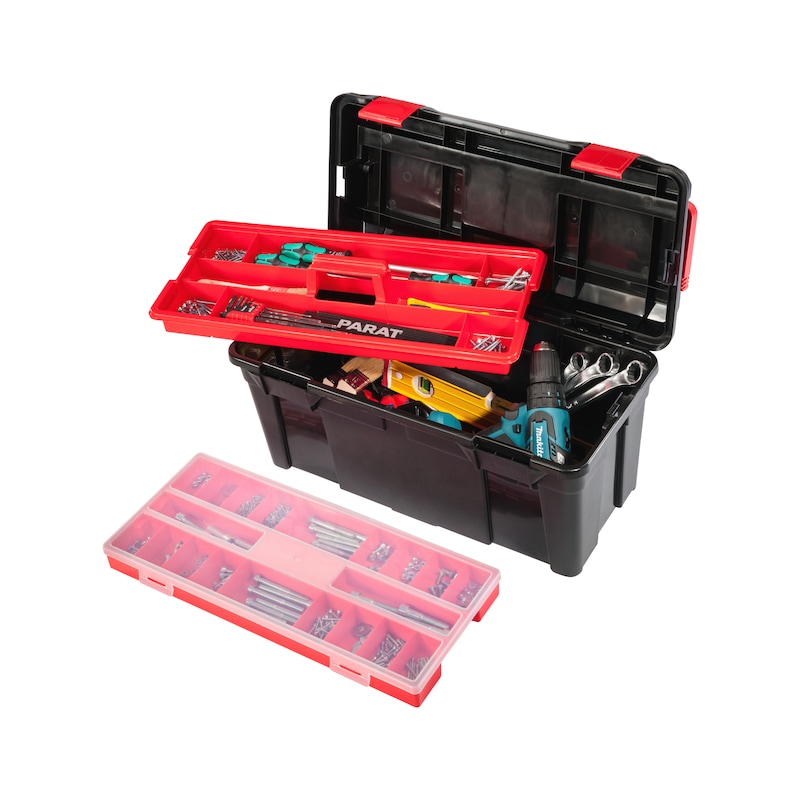 PARAT Profi-Line Werkzeugkoffer L - 21 Liter Mit Kleinteilemagazin, Schwarz