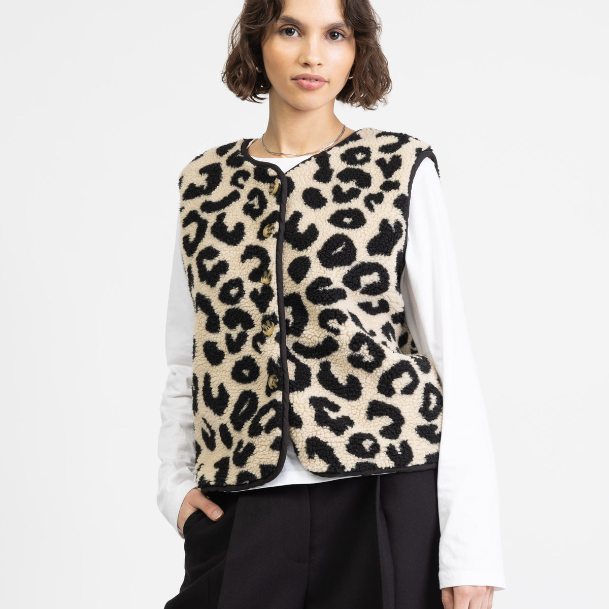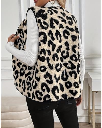 Sawmew Teddy Weste Damen Leopardenprint - Ärmellose Fleeceweste Für Herbst & Winter