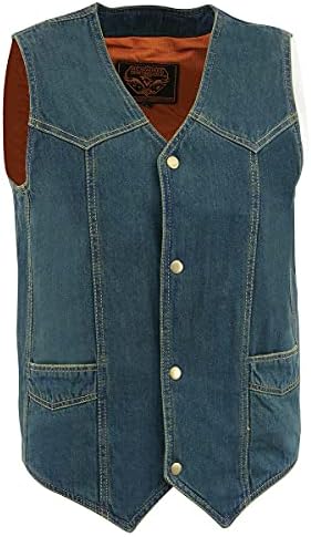Milwaukee Leather Denim Weste Herren - Western Style Mit Seitenschnürung