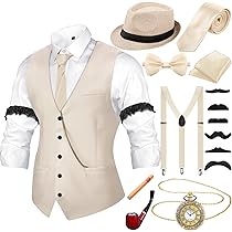 COSDREAMER 1920er Jahre Herren Weste - Vintage Gatsby Style Mit Kette