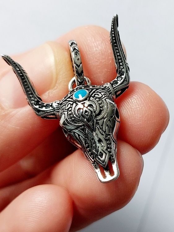 Western Halskette Mit Stierkopf - Türkis Silber Ethnischer Schmuck