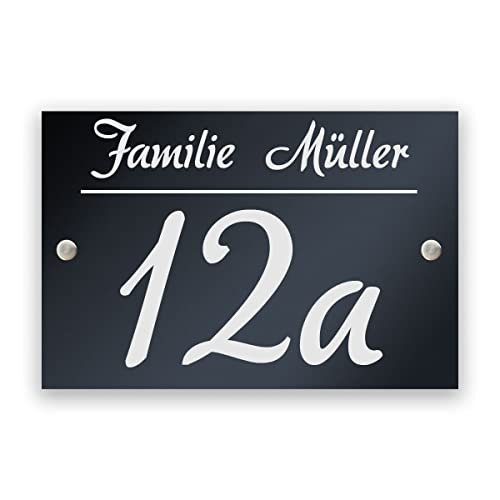 Suchst du ein Hausnummernschild, das wirklich zu deinem Zuhause passt? Dieses personalisierbare Schild ist genau das Richtige! Aus stabilem 3,2mm Gravurlaminat gefertigt, hält es jedem Wetter stand - ob pralle Sonne, Regen oder Frost.\\n\\nDie präzise Lasergravur ist absolut abriebfest und verblasst nicht. Du kannst Straßenname, Hausnummer und sogar Ortsnamen gravieren lassen. Mit 8 verschiedenen Farbkombinationen findest du garantiert das passende Design für dein Haus.\\n\\nDie Montage ist super einfach: Du hast die Wahl zwischen Schrauben, Montageband oder Kleber - je nachdem, was dir lieber ist. Das Schild ist UV-beständig, rostet nicht und bleibt auch nach Jahren noch schön.\\n\\nIn drei Größen erhältlich: 11x19cm, 14x24cm oder 17x29cm. So findest du die perfekte Größe für deine Hauswand. Ob modernes Einfamilienhaus, gemütliches Reihenhaus oder Firmengebäude - dieses Schild macht überall eine gute Figur.\\n\\nEin tolles Geschenk für Einzug, Geburtstag oder einfach so! Deine Gäste und Lieferanten finden dich jetzt immer problemlos. Und das Beste: Du bekommst ein Unikat, das es so kein zweites Mal gibt!