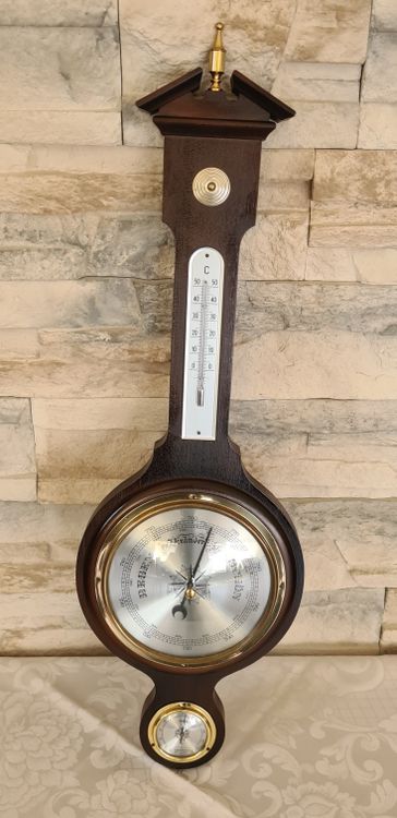Immer wissen, was das Wetter macht? Mit dieser edlen 3-in-1 Wetterstation hast du Temperatur, Luftfeuchtigkeit und Luftdruck immer im Blick! Das goldene Zifferblatt mit 130 mm Durchmesser sieht nicht nur klasse aus, sondern ist auch super gut ablesbar. Aus Aluminiumlegierung gefertigt, ist das Gerät rostfrei und langlebig. Ob im Wohnzimmer, Büro oder auf der Terrasse - es passt überall hin und gibt deinem Zuhause einen touch of class. Einfach aufhängen oder hinstellen, schon kannst du Wettertrends erkennen und dich besser darauf einstellen. Die schwarzen Skalen auf goldenem Grund sehen nicht nur edel aus, sondern sorgen für perfekte Lesbarkeit. So behältst du immer den Überblick über das Raumklima und die Wetterentwicklung. Ein praktisches und dekoratives Accessoire für jedes Zuhause!