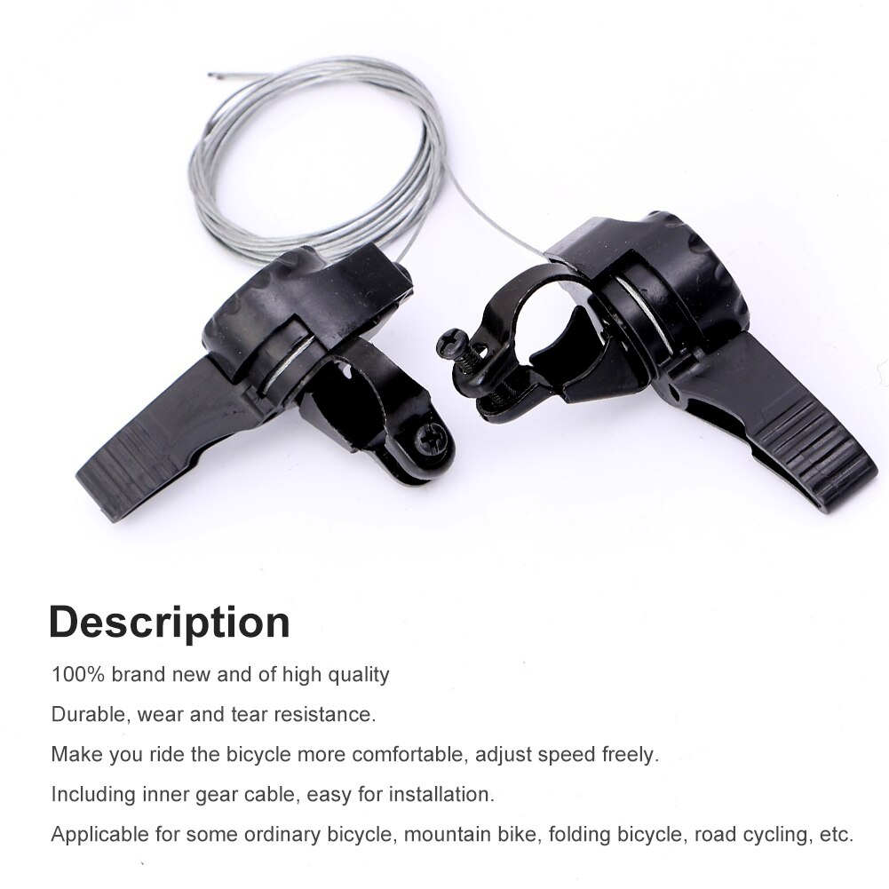 Hey Radfahrer! Dieses WheatThrive Schalthebel-Set bringt dein Bike auf Vordermann. Perfekt für Mountainbikes und Cityräder mit 15, 18 oder 21 Gängen. Die Schalthebel sind aus robustem Kunststoff und Stahl - halten also was aus! Das coole: Sie sorgen für super-smoothies Schalten, kein Ruckeln, kein Haken. Einfach zu montieren, das Kabel ist schon dabei. Du kriegst zwei Schalthebel geliefert, also für beide Seiten. Ob du nun bergauf oder auf flacher Strecke unterwegs bist - mit diesen Hebeln machst du immer eine gute Figur. Besonders für Einsteiger super geeignet, aber auch Profis schätzen die Zuverlässigkeit. Deine Fahrten werden einfach entspannter, wenn die Schaltung rund läuft. Und bei dem Preis kann man wirklich nicht meckern! Einfach einbauen und den Unterschied spüren.