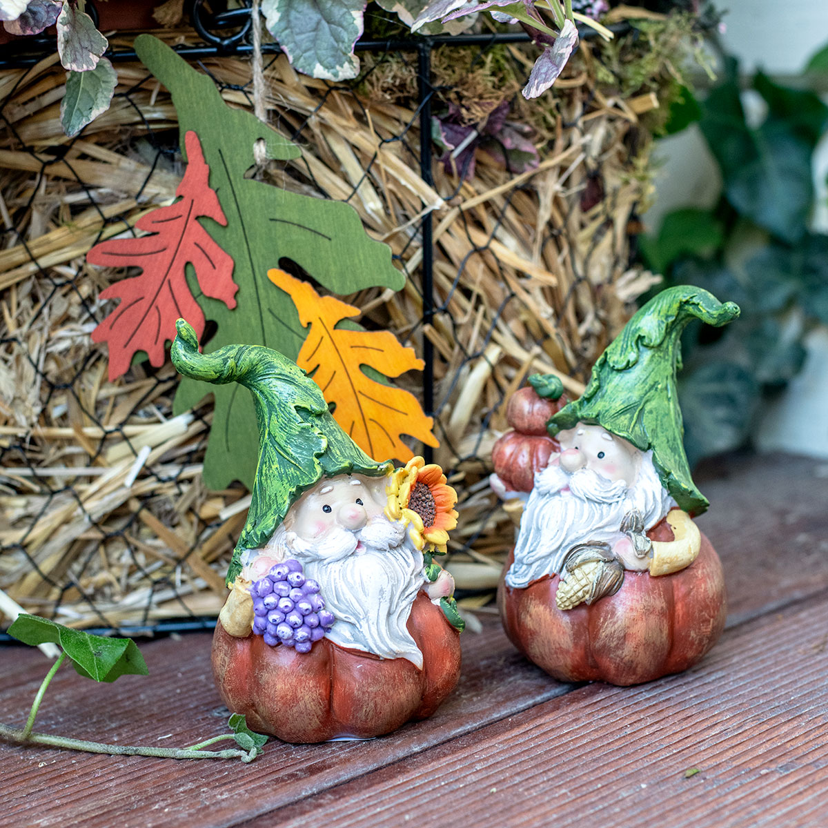 2 Stück Herbst Wichtel Deko - Mit Ahornblatt & Kürbis