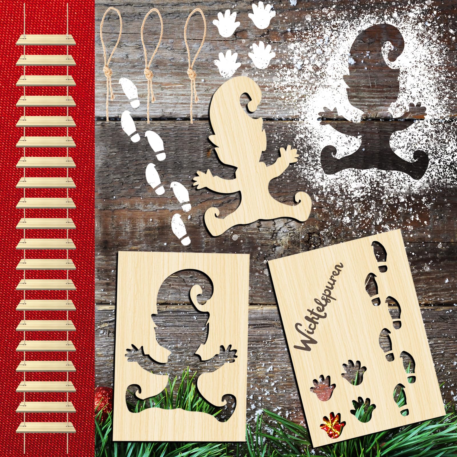 Wichtelschablone Fußabdrücke Mit Leiter - Weihnachtsdeko Für Kinder