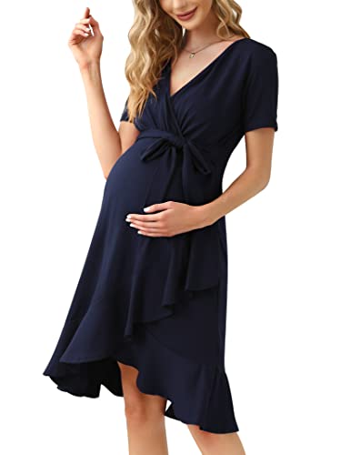 Umstandskleid Damen - Wickelkleid Mit V-Ausschnitt Für Schwangerschaft