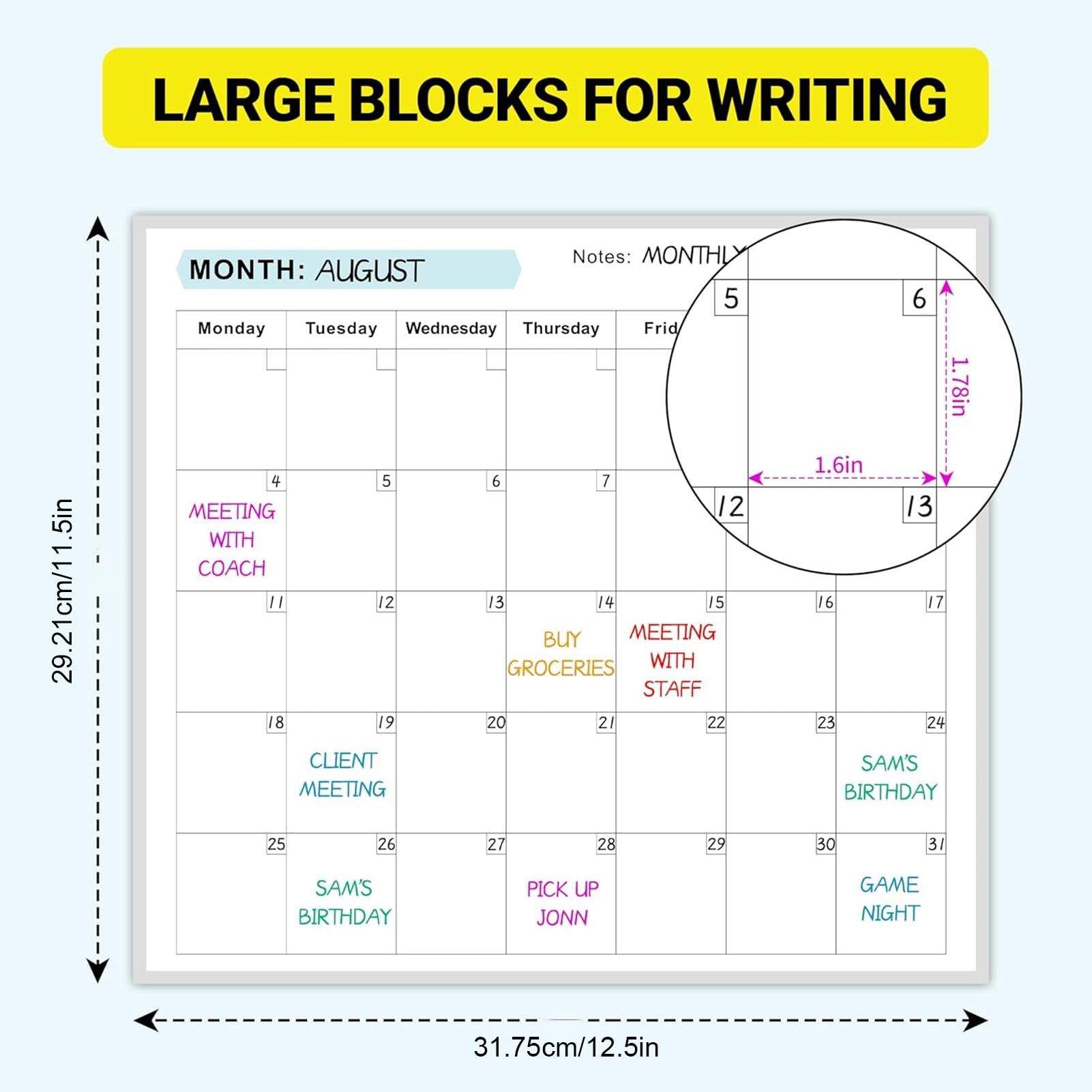 Organisation war noch nie so einfach! Dieser riesige Whiteboard-Kalender in 150x85cm gibt dir perfekten Überblick über deine Termine. Trocken abwischbar - einfach mit Whiteboard-Markern beschreiben und mit einem Tuch löschen. Undatiert und damit jahrelang verwendbar. Perfekt für Büros, Klassenzimmer, Home-Office oder die Familien-Küche. Mit extra Platz für To-Do-Listen und Notizen. Die große Größe macht alles gut lesbar - auch aus einiger Entfernung. Einfach an die Wand hängen und sofort besser planen. Das ideale Geschenk für organisierte Menschen - oder die die es werden wollen!