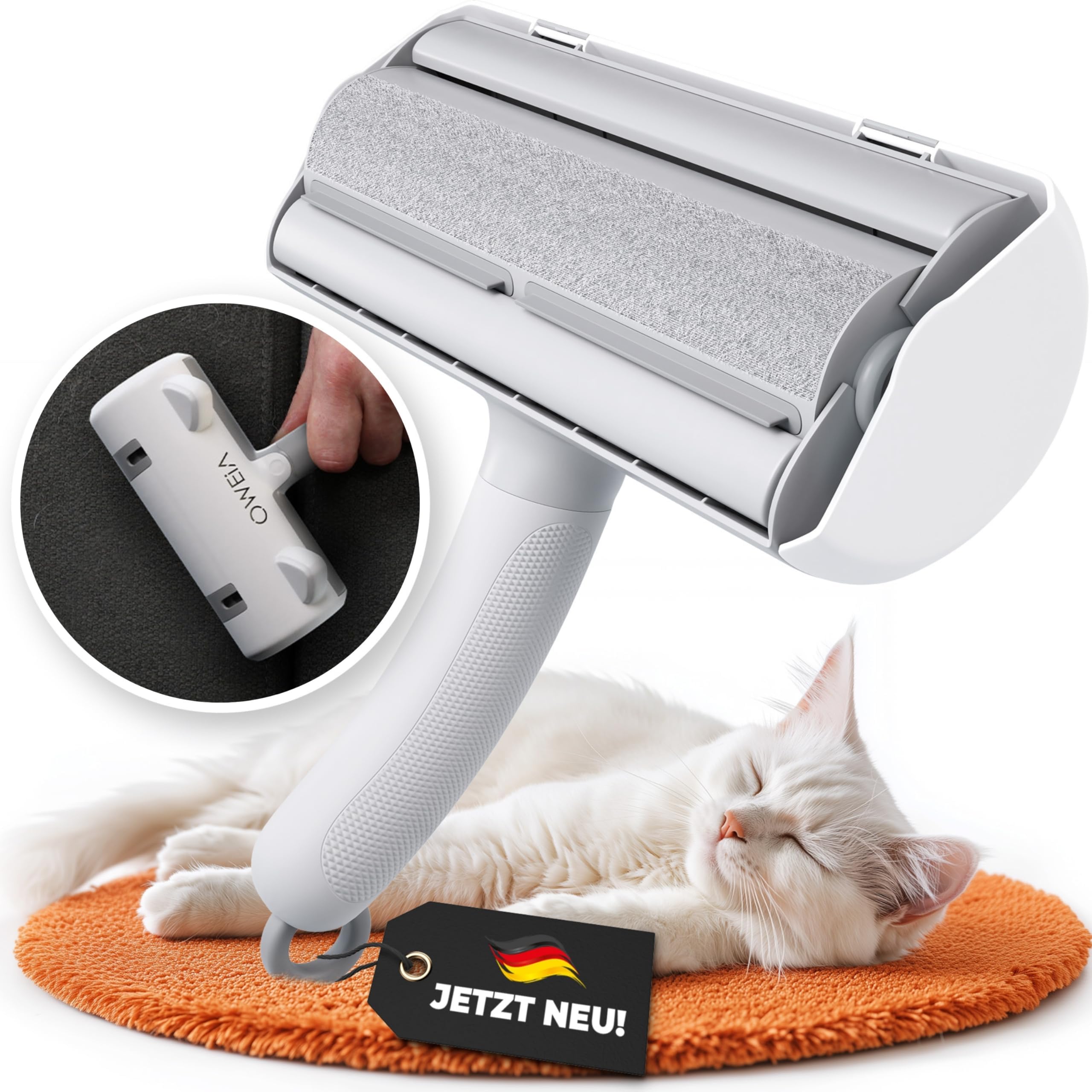 Schluss mit Tierhaaren überall! Diese geniale 4-in-1 Bürste ist die Rettung für alle Haustierbesitzer. Mit einem sanften Wischen entfernst du lästige Hunde- und Katzenhaare von Sofas, Teppichen, Autositzen und Kleidung - und das ganz ohne Chemie oder komplizierte Technik. Der große 45 cm Griff bedeutet: Du musst dich nicht mehr bücken oder hocken, sondern kannst bequem im Stehen arbeiten. Die Hauptbürste aus weichem Flanell ist schonend zu deinen Möbeln und entfernt die Haare trotzdem gründlich. Die kleine Detailbürste kommt in Ritzen und Ecken, wo sich die Haare gerne verstecken. Und das beste Feature: Ein integrierter Schaber für Fenster und Glasflächen! So hast du gleich mehrere Reinigungsutensilien in einem. Die Bürste ist wiederverwendbar und waschbar - einfach die Haare entfernen und bei Bedarf auswaschen. Macht kaum Lärm, also erschreckt sie deine tierischen Mitbewohner nicht. Mit dem ergonomischen, verdickten Griff liegt sie super in der Hand. Ein absolutes Must-Have für jeden Tierhalter - endlich wieder saubere Möbel und Kleidung ohne ständiges Fusselklebeband!