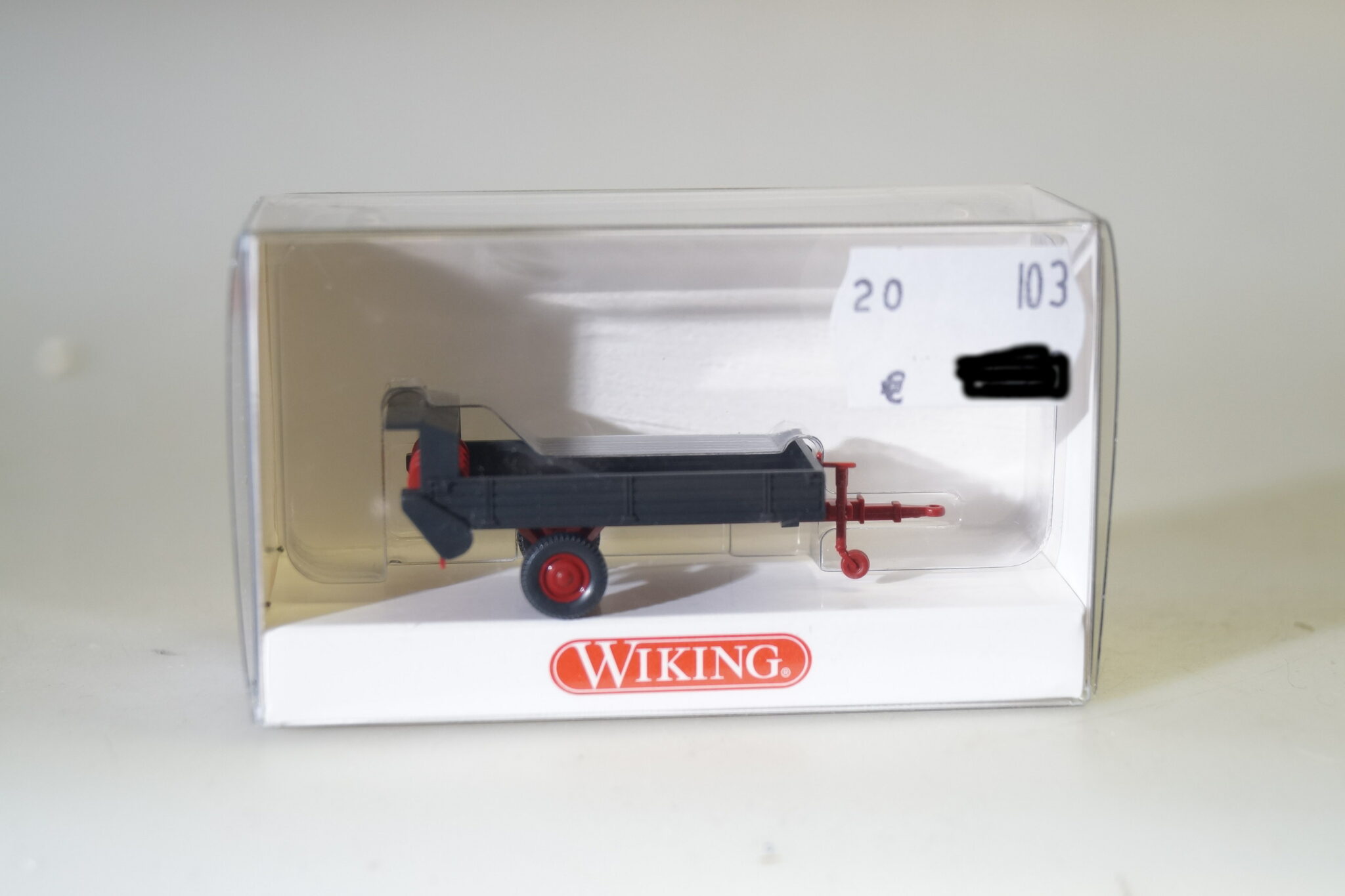 Ab auf den Modellbauernhof! Dieser Wiking Fortuna Miststreuer ist ein echter Hingucker in jeder Modellandschaft. ◾️ Maßstab 1:87 (H0) - passt zu den meisten Modellbahnen ◾️ Silber-rote Lackierung - typisch für die 70er Jahre ◾️ Mit Alu-Planken - innovative Technik für die Zeit ◾️ Dreidimensionales Streuwerk - super detailliert ◾️ Stützrad und Spindel - alles originalgetreu Der Streuer war damals ein echter Dauerläufer auf den Höfen. Mit der rotierenden Schnecke hinten wurde der Mist schön gleichmäßig auf den Feldern verteilt. Sieht nicht nur gut aus, sondern hat auch ne interessante Geschichte. Perfekt für alle, die ihre Modell-Landwirtschaft authentisch gestalten wollen!
