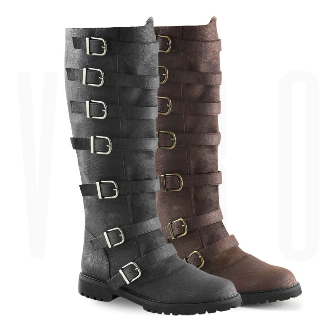 Tauch ein in die Welt der Ritter und Wikinger! Diese Mittelalter-Stiefel aus PU-Leder sehen total authentisch aus. Unisex - passen für Damen und Herren. Mit flachem Boden und verstellbarem Spann für perfekten Komfort. Perfekt für LARP, Renaissance-Feste, Mittelaltermärkte, Steampunk oder Halloween. In 9 Größen erhältlich - bei Zwischengrößen lieber eine Nummer größer bestellen. Mach dein Kostüm komplett und werde zum echten Ritter oder tapferen Wikinger! Einfach anziehen und in eine andere Zeit eintauchen!