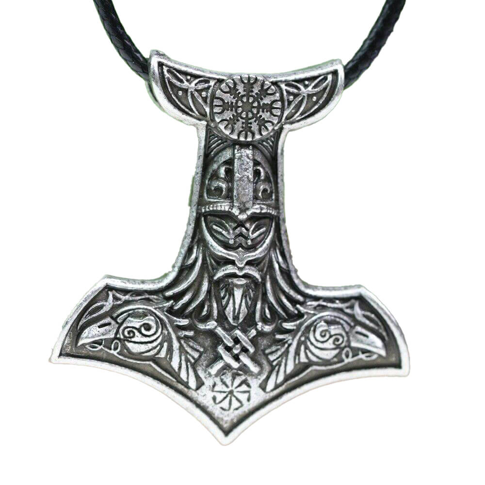 Kraftvoller Wikingerschmuck für echte Nordland-Fans! Dieser Thors Hammer aus 925er Sterlingsilber ist ein echter Hingucker. Zweifarbiges Design mit antikem Silber und goldfarbenen Akzenten. Zeigt vier Elemente und nordische Runen - voller Symbolik. Komplett mit schwarzer Kordel und Silberkette - trag ihn wie du willst! Für Herren und Damen gleichermaßen geeignet. Hochwertige Verarbeitung, jedes Detail perfekt ausgearbeitet. Perfekt für Alltag oder besondere Anlässe. Zeig deine Verbundenheit mit der nordischen Mythologie!