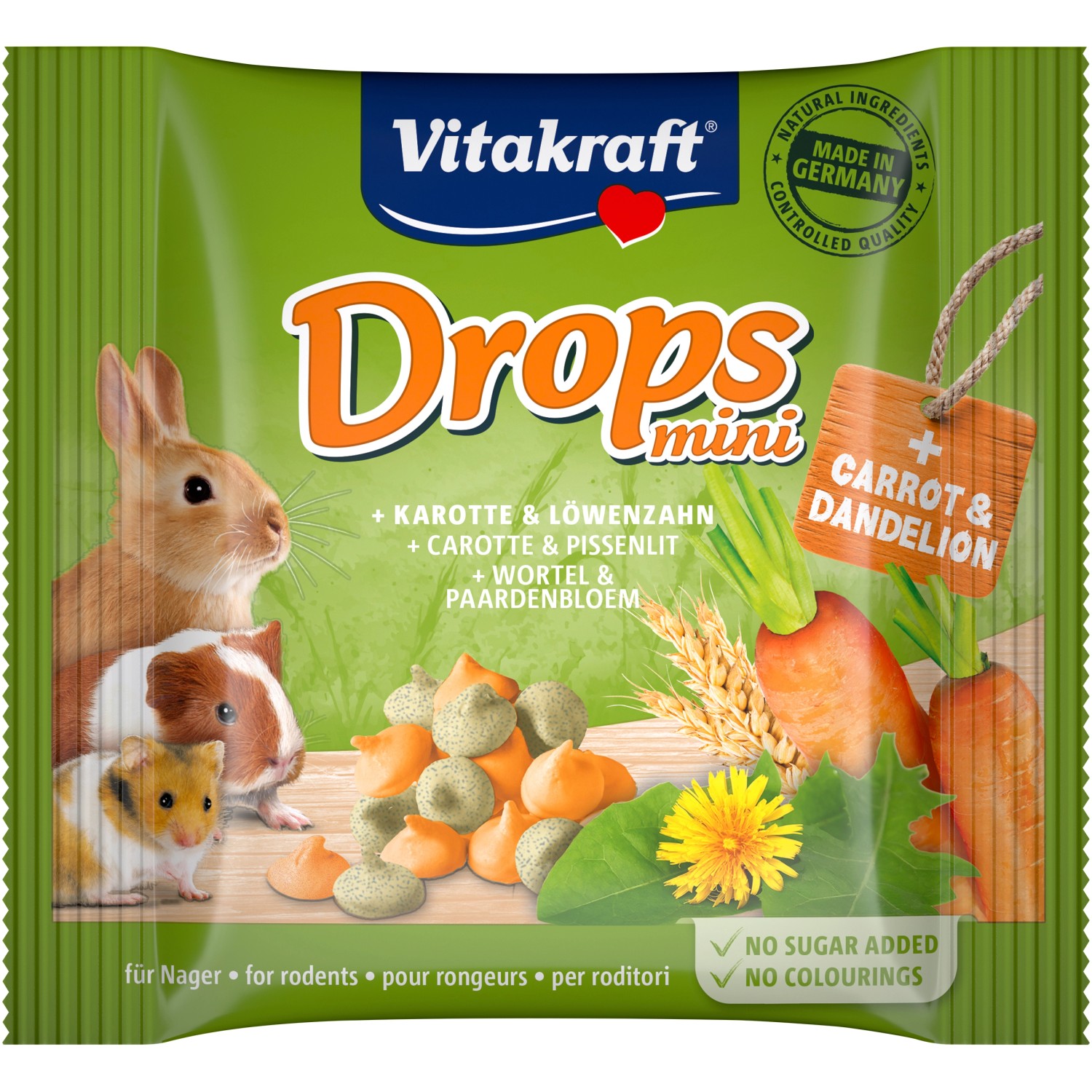 Dein Hoppler wird verrückt nach diesen leckeren Vitakraft Kaninchentropfen sein! Die süßen Joghurt-Tropfen mit echten Wildbeeren sind der absolute Lieblingssnack für alle Kaninchen. Perfekt zum Verwöhnen, als Belohnung beim Training oder einfach mal so zwischendurch. Hergestellt mit natürlichen Zutaten - ohne künstliche Farb- oder Aromastoffe. Enthalten wertvolles Lecithin und wichtige Vitamine für eine gesunde Ernährung. Der wiederverschließbare Beutel hält die Tropfen immer frisch und knusprig. Einfach kühl lagern und direkte Sonne vermeiden. Für Kaninchen aller Rassen und Altersstufen - der perfekte Snack für deinen pelzigen Freund!