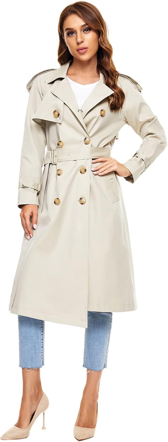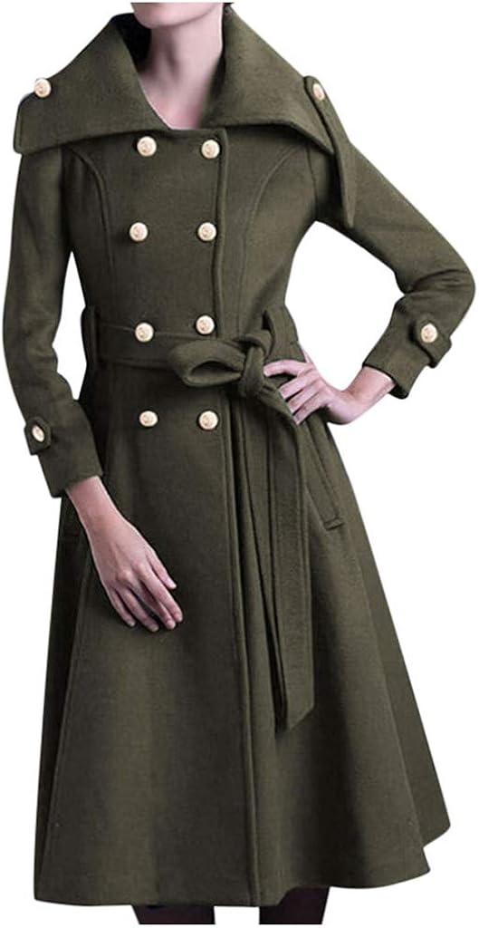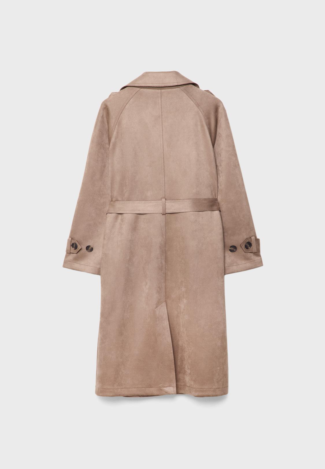 Damen Trenchcoat Aus Faux Wildleder - Langer Erbsenmantel Mit Gürtel Und Notched Revers