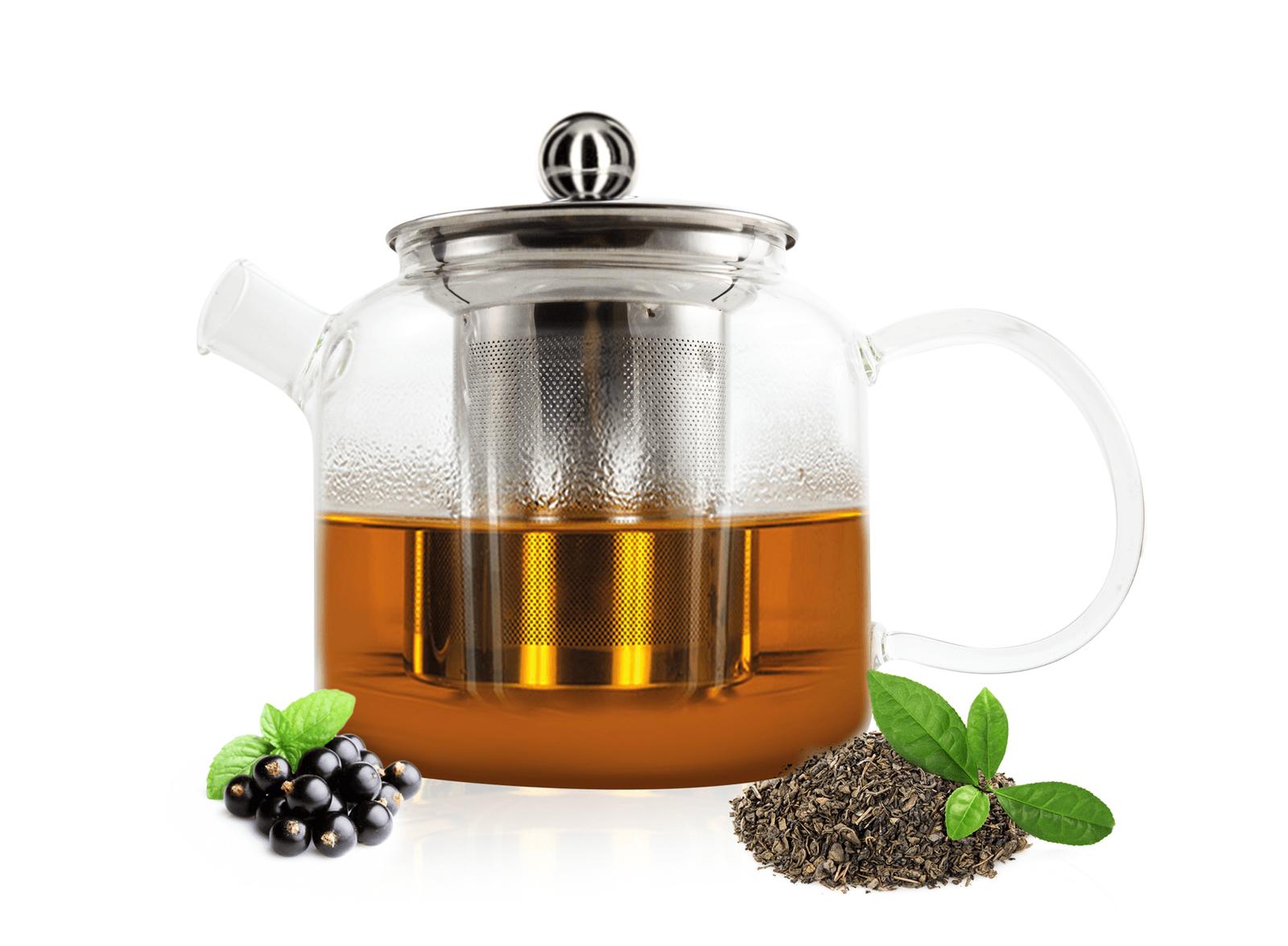 Wilmax Glas Teekanne 1200ml Mit Bambusdeckel - Hitzebeständig