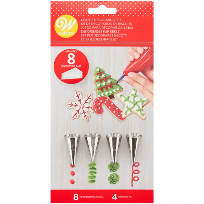 Wilton Spritzdüsen Set Weihnachten - 4 Edelstahl Tüllen #005 #101 #012 #003 Mit 8 Spritzbeuteln