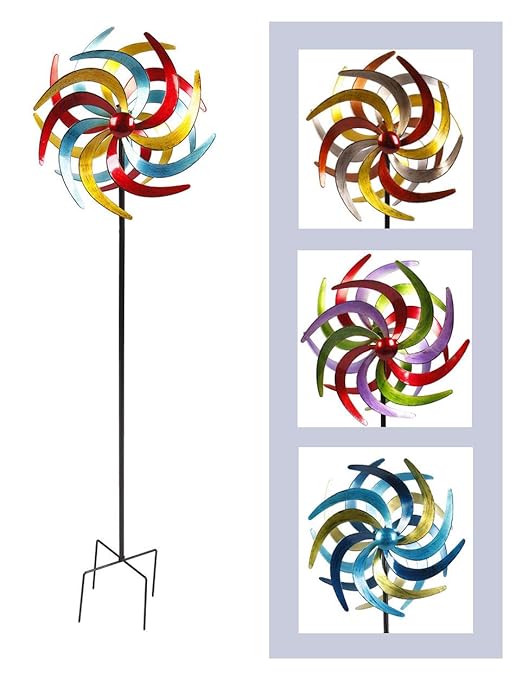 Windrad Garten Deko - Bunte Windmühle Aus Metall 125 Cm Mit Windfahne