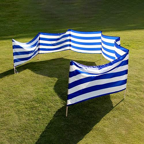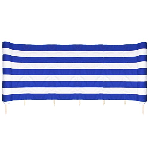 Dieser maritime Windschutz bringt nordisches Feeling an jeden Strand! Mit 8 Metern Länge und 80 cm Höhe schützt er zuverlässig vor Wind, aufwirbelndem Sand und neugierigen Blicken. Die typischen blau-weißen Streifen sehen einfach klasse aus. Die 7 Holzstäbe mit Spitze steckst du einfach in den Sand - aufgebaut ist er in wenigen Minuten. Nach dem Strandtag rollst du ihn zusammen, schnürst ihn mit den Bändern fest und nimmst ihn am Tragegurt bequem mit. Aus robustem Nylon-Stoff hält er viele Urlaube durch. Ob Ostsee, Nordsee oder heimischer See - mit diesem Windschutz genießt du garantiert ein windstilles Plätzchen!