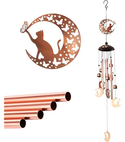 Katzen Windspiel Aus Kupfer - Elegante Deko Mit Sanften Glockentönen
