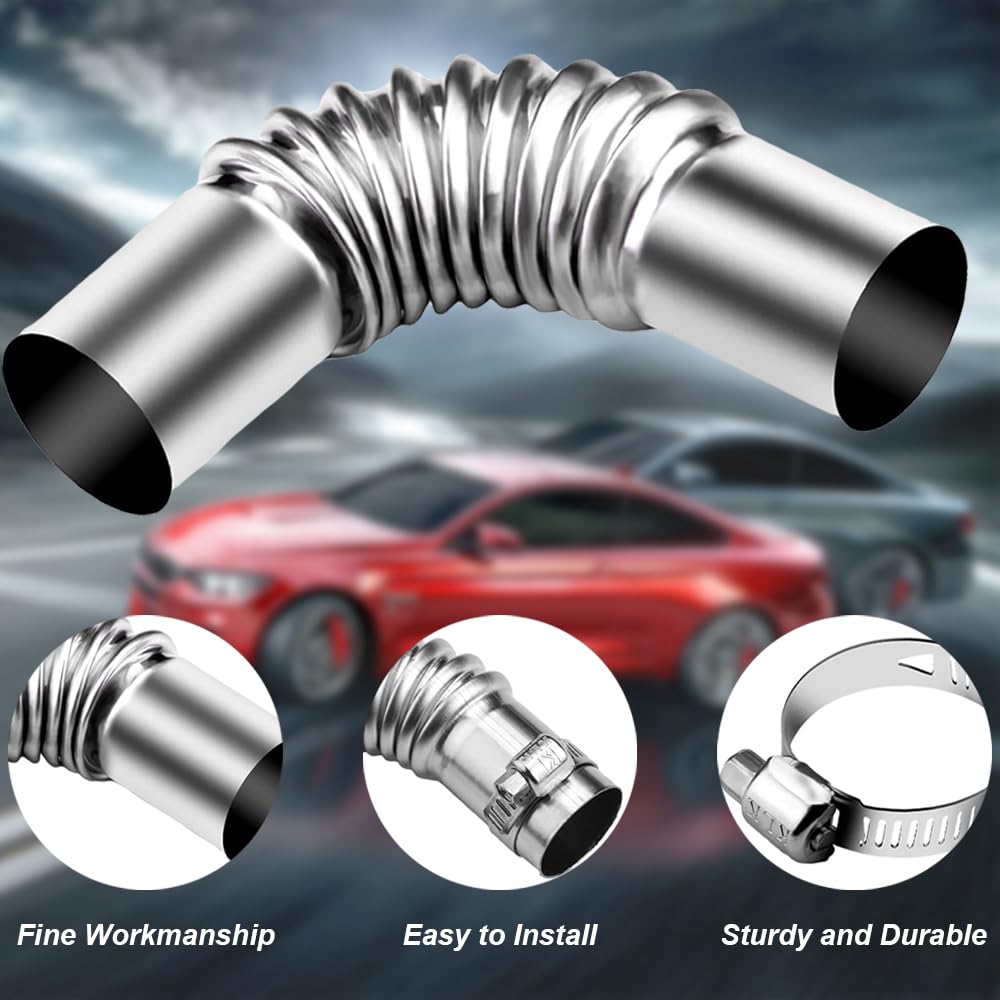 Platzprobleme beim Abgassystem? Diese praktischen 90-Grad Winkelverbinder lösen jedes Platzproblem! Aus hochwertigem Edelstahl machen sie dein Abgassystem perfekt dicht.\\n\\nTechnische Daten:\\n• Material: Edelstahl\\n• Durchmesser: 25mm innen, 27mm außen\\n• Länge: 13cm pro Stück\\n• Winkel: 90 Grad\\n• Lieferumfang: 4x Winkelverbinder + 8x Schellen\\n\\nPerfekt für Standheizungen, Dieselheizungen, Autos, Motorräder oder auch Generatoren. Die 25mm passen für die meisten gängigen Abgassysteme.\\n\\nDer Einbau ist denkbar einfach: Altes Rohr raus, Winkelverbinder rein, mit den mitgelieferten Schellen festziehen - fertig! Kein Bohren oder Schneiden nötig.\\n\\nDas Edelstahl-Material ist absolut rostfrei, hitzebeständig und hält ewig. So verbesserst du nicht nur den Abgasfluss, sondern auch die gesamte Fahrzeugleistung.\\n\\nEin Must-have für alle, die ihr Abgassystem optimieren oder reparieren wollen. Einfach bestellen und einbauen!