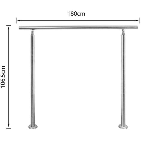 Vkechh Edelstahl Treppengeländer 180cm - Winkelverstellbar, 42mm Durchmesser, Mit 5 Querstreben