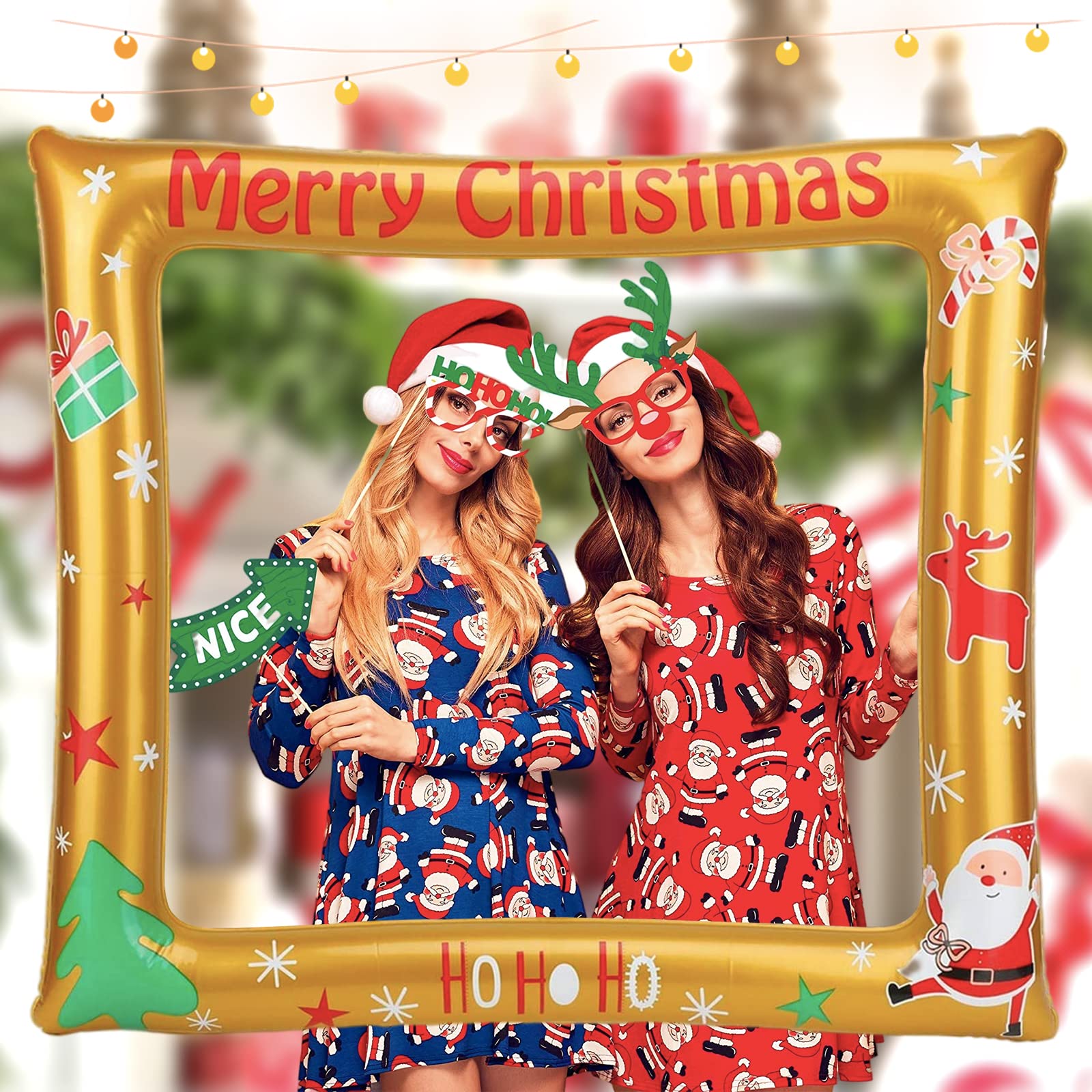 Lass die Winter-Party steigen! Dieses super lustige Set mit 33 blauen Fotoautomaten-Requisiten bringt jede Weihnachtsfeier zum Strahlen. Enthalten ist ein aufblasbarer Winter-Selfie-Fotorahmen, der im Handumdrehen aufgebaut ist und sofort für Partystimmung sorgt. Dazu jede Menge niedliche Accessoires und Requisiten im winterlichen Blau-Ton - perfekt abgestimmt auf die Weihnachtszeit. Ob mit Freunden, Familie oder Kollegen - mit diesen Props werden eure Fotos zum absoluten Highlight! Einfach die Requisiten verteilen und schon entstehen die witzigsten und kreativsten Fotos. Perfekt geeignet für Weihnachtsfeiern, Firmenevents, Familienfeste oder einfach nur für gemütliche Abende mit Freunden. Die Requisiten sind leicht und einfach zu handhaben, sodass wirklich jeder mitmachen kann. Besonders der aufblasbare Rahmen ist ein echter Hingucker und macht jedes Foto zum Kunstwerk. Einfach aufblasen, aufstellen und loslegen! Dieses Set verwandelt jeden Raum in eine winterliche Fotostudio - und die Erinnerungen an eure Party bleiben damit für immer festgehalten!