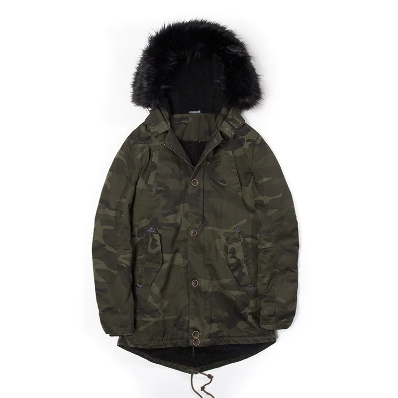 Männer Winter Parka Mit Kapuze - Warme Fleece Jacke Mit Pelzkragen Militärstyle