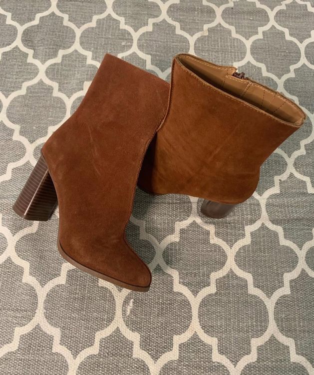 Damen Stiefeletten Wildleder Blockabsatz - Winter Spitze Mit Reißverschluss