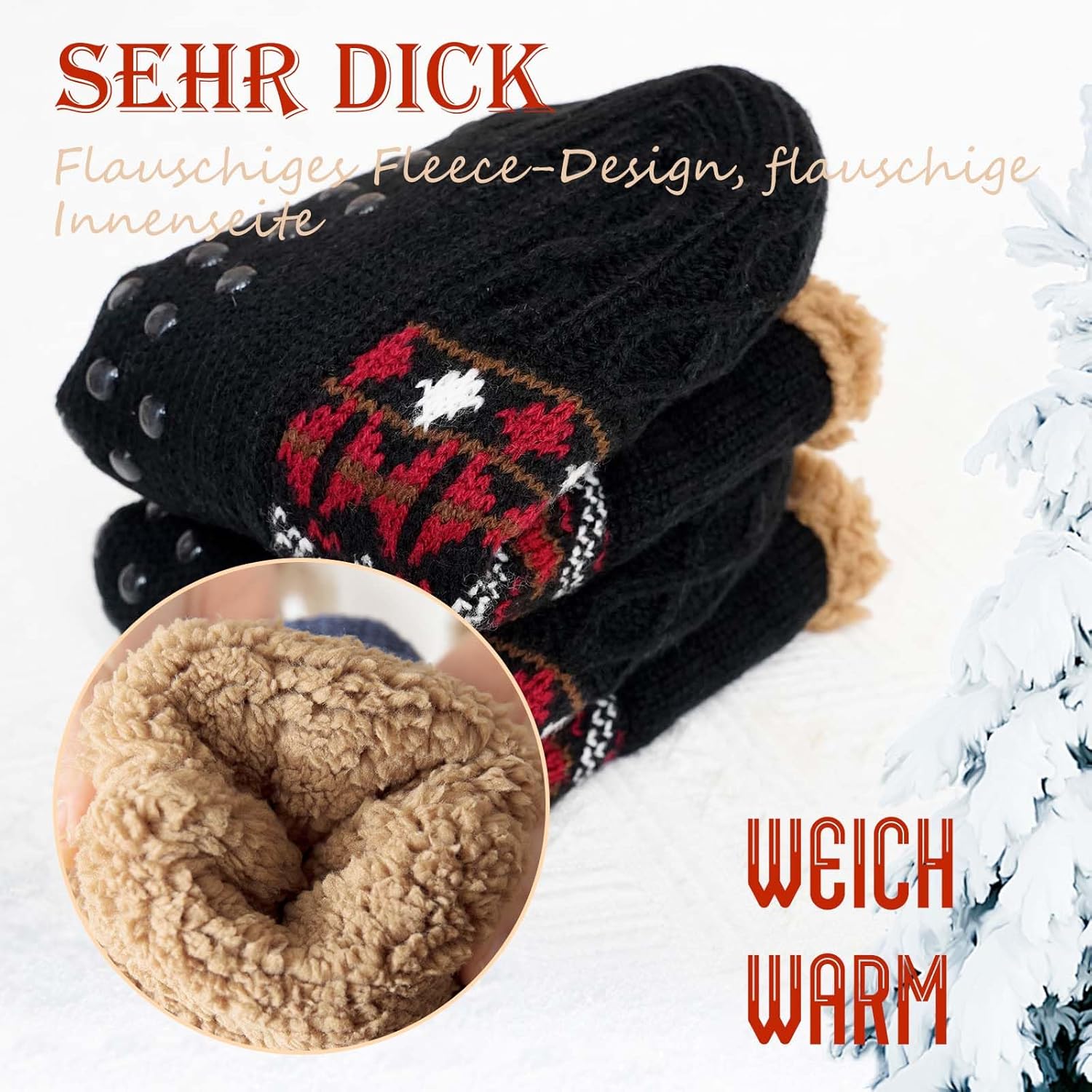 JOMIX Winter Stoppersocken Herren - Rutschfeste Flauschige Haussocken Mit Rentier-Muster