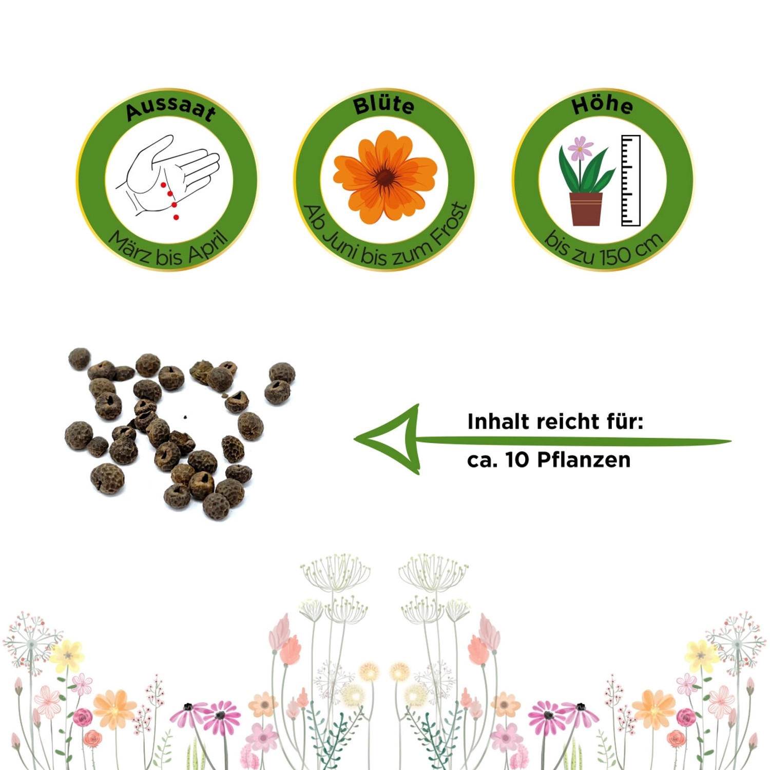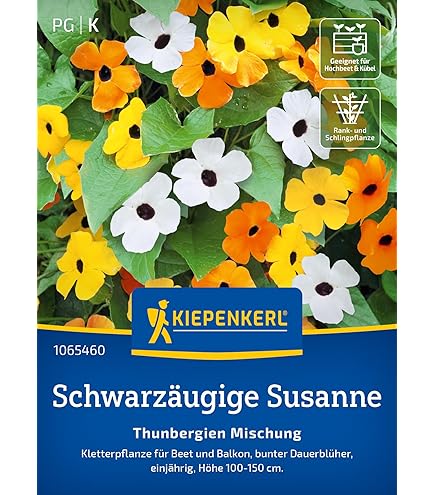 Träumst du von einem blühenden Garten? Mit diesen Schwarzäugige Susanne Samen wird's was! Die Kletterpflanze ist winterhart, mehrjährig und eine echte Bienenweide - perfekt für Naturgärten. Einfach aussäen und schon bald rankt sie an Zäunen, Spalieren oder Wänden empor. Mit 250 Samen hast du genug für große Flächen oder kannst sie mit Freunden teilen. Die gelb-orangen Blüten mit schwarzem Auge ziehen Schmetterlinge und Vögel magisch an. Ideal für Hochbeete, Rabatten oder als Sichtschutz. Auch als Schnittblumen in der Vase machen sie was her! Ob drinnen vorgezogen oder direkt im Garten - diese Blumen bringen Leben und Farbe in dein Grün. Ein tolles Geschenk für alle Gartenfans!