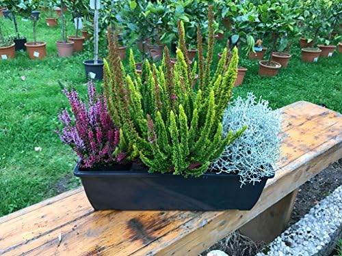 Perfekt für die Herbstsaison! Dieser 40cm breite Balkonkasten kommt schon fertig bepflanzt mit dem beliebten Calluna vulgaris Trio Milka, auch bekannt als Knospenheide oder Besenheide. Dazu gesellen sich dekoratives grün-weißes Gras und hübsche Scheinbeeren - eine richtig schöne Kombi für deinen Balkon oder die Terrasse. Die Winterheide ist total pflegeleicht und blüht auch bei kühleren Temperaturen noch wunderbar. Das Beste: Die Pflanzen kommen aus der traditionsreichen Gärtnerei Enseleits, einem Familienunternehmen mit über 100 Jahren Erfahrung. Die wissen einfach, wie man Qualitätspflanzen zieht! Ideal für alle, die auch im Herbst und Winter nicht auf frisches Grün und zarte Blüten verzichten wollen. Einfach gut angießen und an einen sonnigen bis halbschattigen Platz stellen - mehr braucht's nicht für eine herbstliche Pracht, die wirklich lange hält. Übrigens: Die Knospenheide behält ihre Farbe besonders lange, weil die Knospen nicht vollständig aufgehen. So hast du monatelang Freude an deinem herbstlichen Blütenmeer!