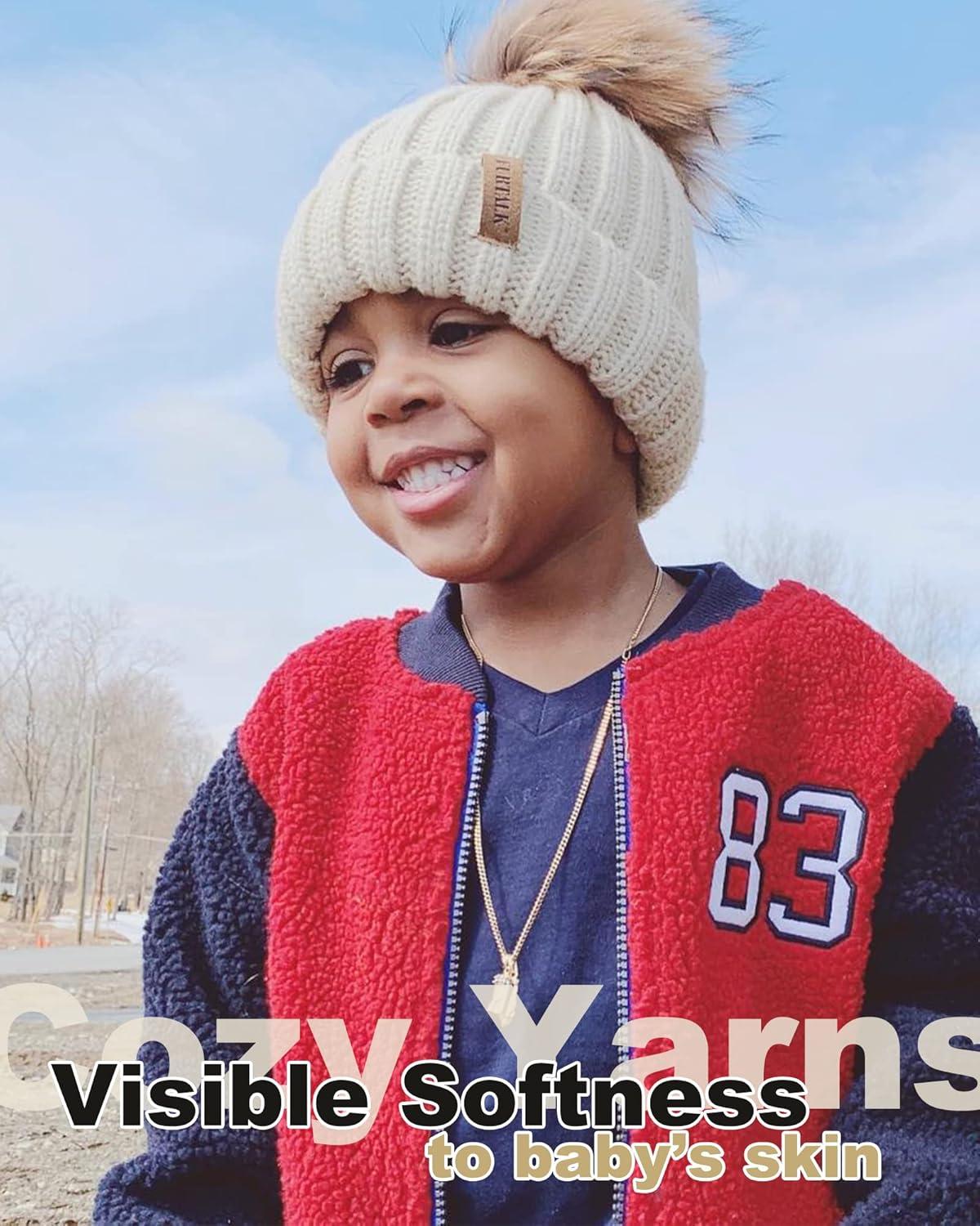 FURTALK Baby Wintermütze Mit Ohrenklappen - Warme Strickmütze Mit Pom Pom