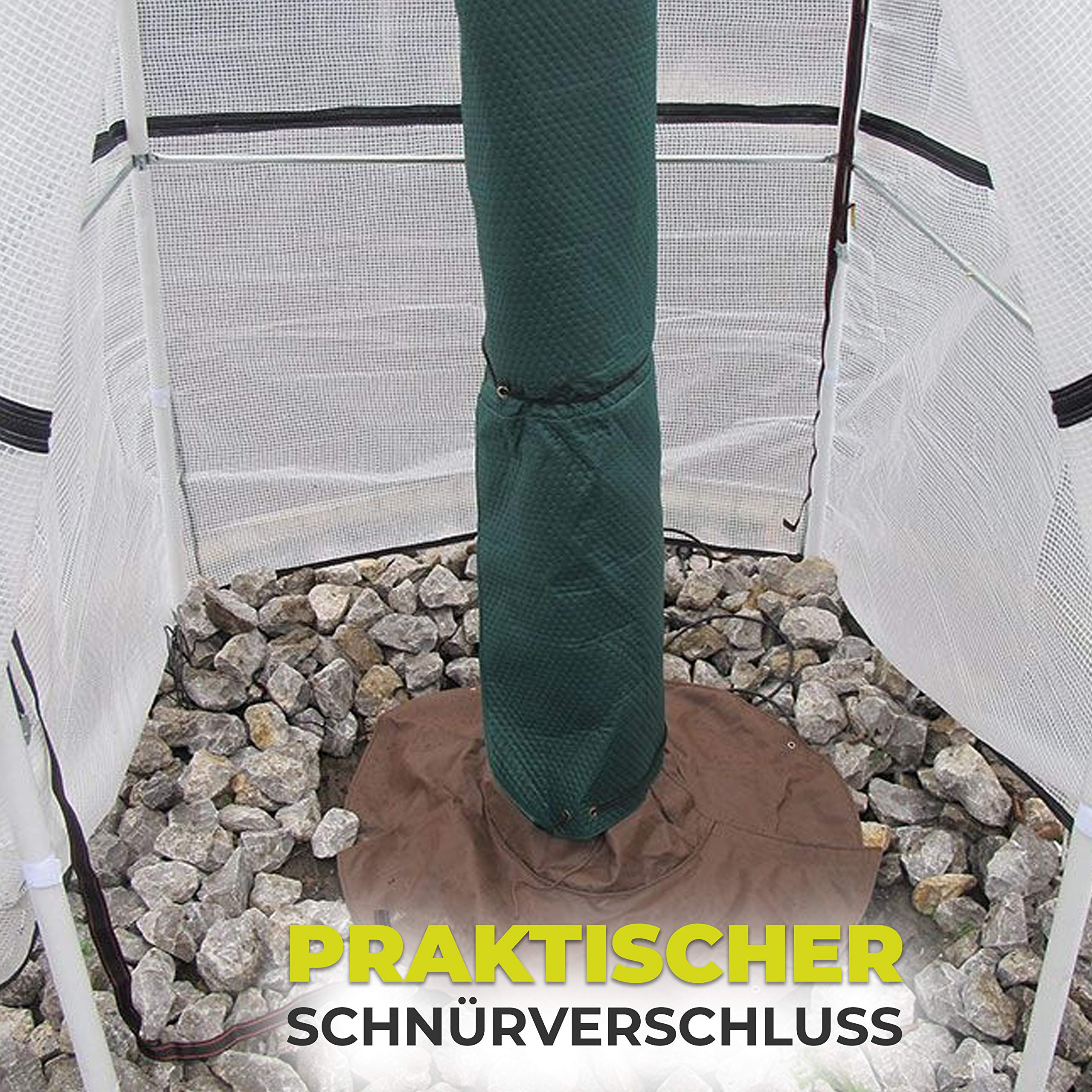 Deine Palmen und Kübelpflanzen frieren im Winter? Mit diesen Wurzelschützern machst du Schluss damit! Der Winterschutz besteht aus einem dreilagigen Vliesstoff mit Aluminium-Innenschicht – das hält die Kälte draußen und die Wärme an den Wurzeln. Besonders praktisch: Die Abdeckung ist thermostatisch, das heißt, sie hält die Wurzeln automatisch auf der richtigen Temperatur. So überstehen deine Pflanzen auch frostige Nächte ohne Schaden. Einfach über den Wurzelbereich stülpen, mit den beiliegenden 8 Erdankern fixieren – und schon sind deine Pflanzen geschützt. Die Abdeckung passt sich flexibel an und eignet sich für Stämme bis 34 cm Durchmesser. unten gibt’s einen Kordelzug und Klettverschlüsse, damit alles sicher sitzt. Nach dem Winter einfach waschen, trocknen und für die nächste Saison aufbewahren – so hält der Schutz viele Jahre. Perfekt für Palmen, Rosen, Zitrusbäume, Tomaten und mehr. Auch gegen Vögel und Insekten ein echter Helfer!