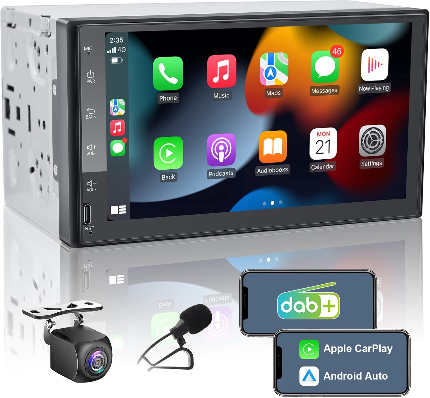 Hey Autofan! Dieses DAB+ Doppel Din Autoradio bringt dein Fahrzeug in die Moderne! Mit dem 7 Zoll Touchscreen und Wireless CarPlay sowie Android Auto hast du alle Funktionen deines Smartphones immer griffbereit - aber sicher! Navigation, Musik, Anrufe - alles läuft über das intuitive Display. Besonders praktisch: Die Mirror Link Funktion zeigt dir den Handybildschirm direkt auf dem Radio an. Und mit der integrierten Bluetooth-Funktion kannst du freihändig telefonieren. Der DAB+ Empfang sorgt für kristallklaren Radio-Sound ohne Rauschen - ein echter Game-Changer gegenüber normalem FM Radio! Die Farb-Hintergrundbeleuchtung lässt sich individuell anpassen und die EQ-Einstellungen geben dir die volle Kontrolle über den Sound. Optional kannst du sogar eine Rückfahrkamera anschließen - parken war noch nie so einfach! Installation? Kein Problem - das Radio passt in die meisten Doppel-Din-Schächte. Mach dein Auto fit für die Zukunft - mit diesem Multitalent!