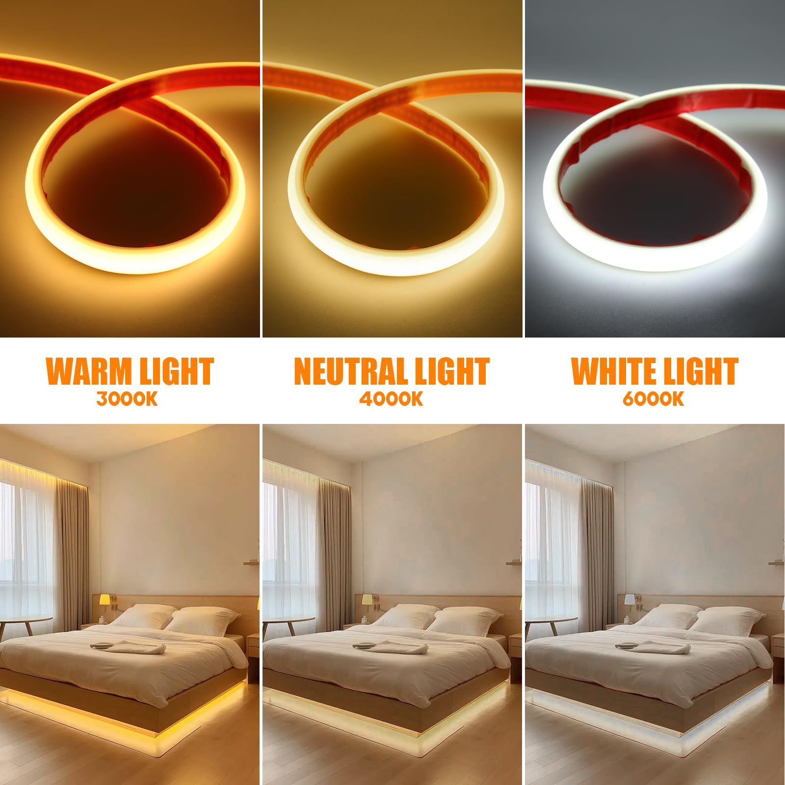 Wisada 220V Neon LED Streifen - 8m Selbstklebend, Warmweiß, Für Innenbereich