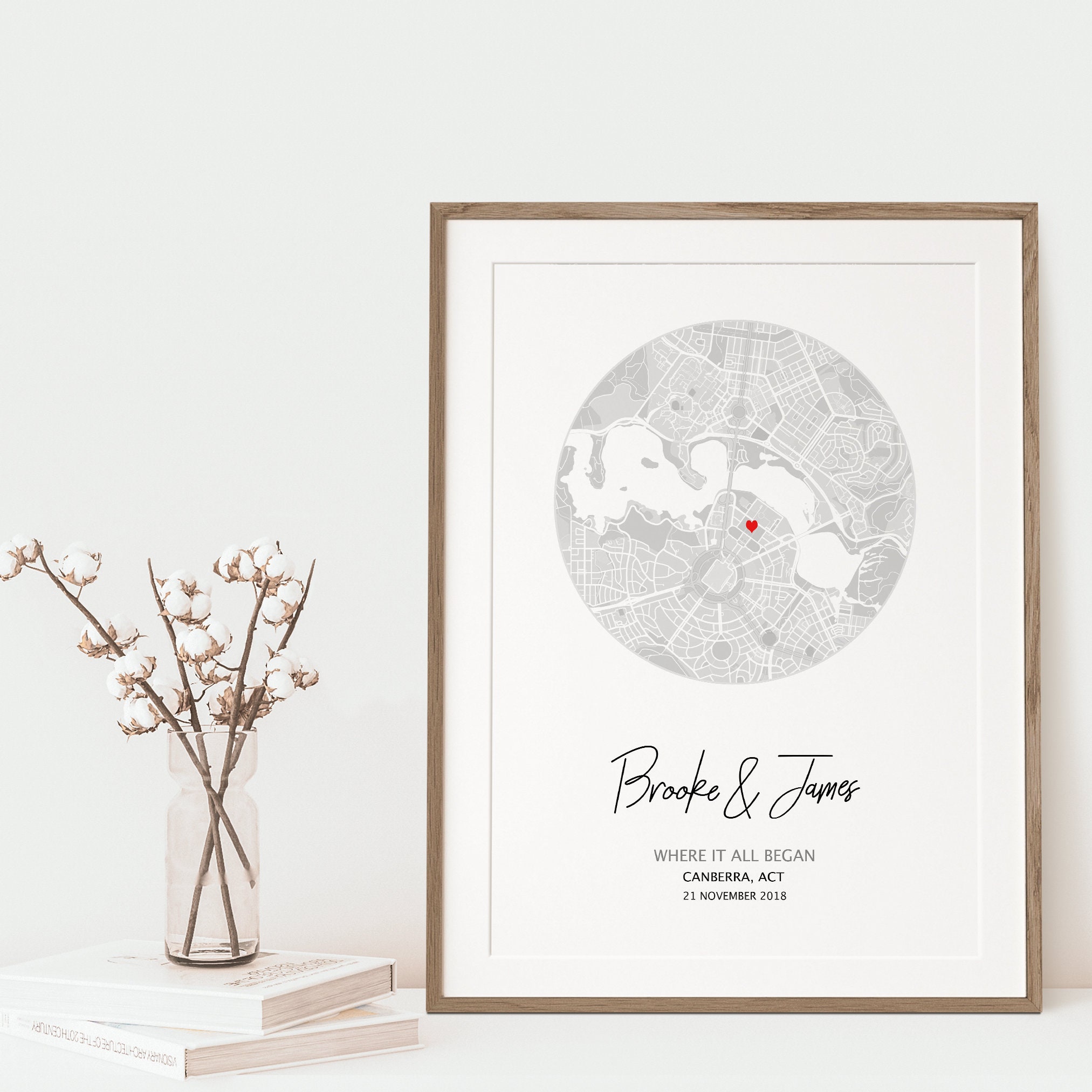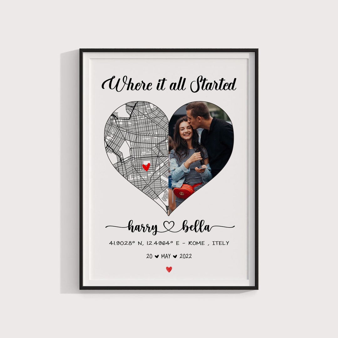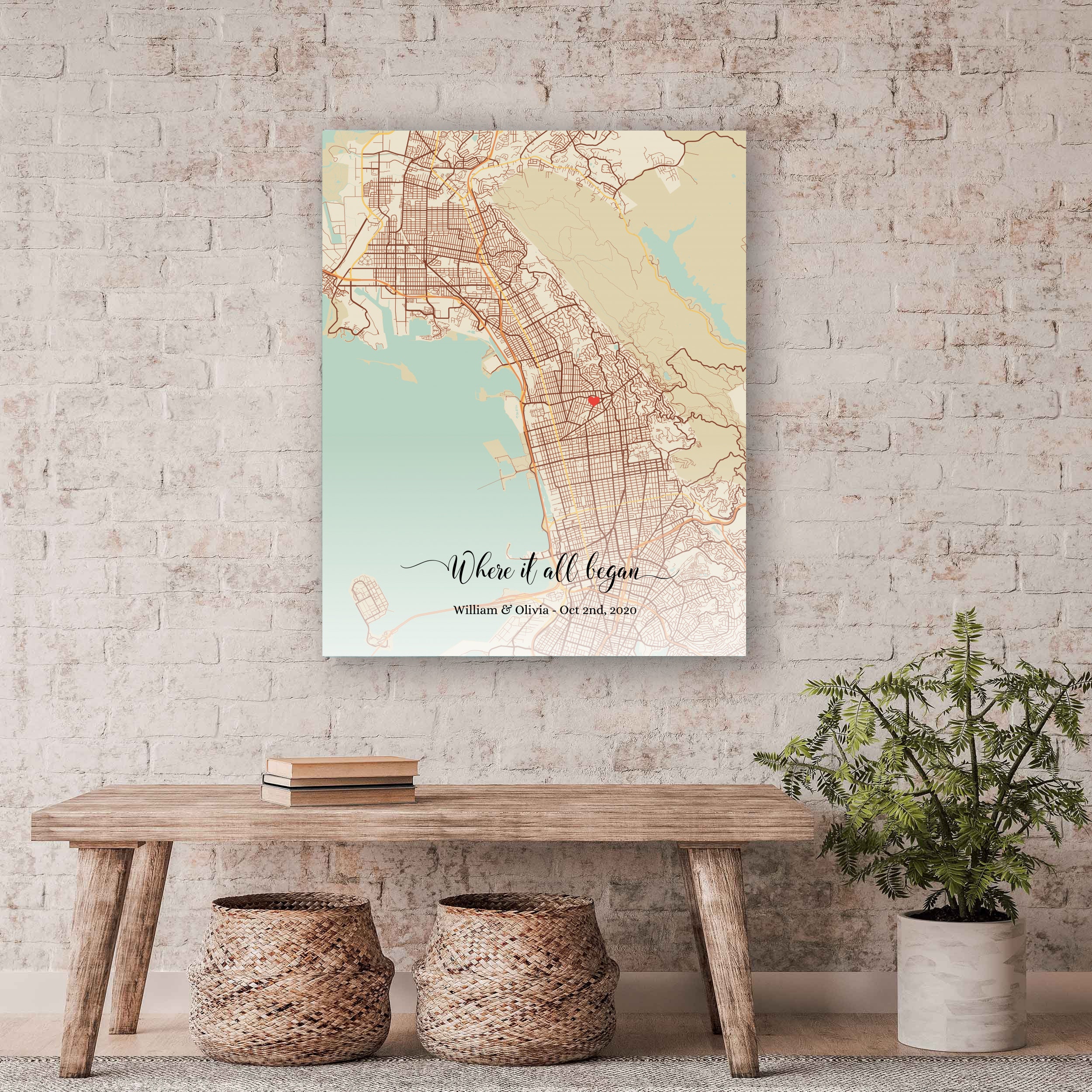Personalisiertes Landkarten Poster - Wo Alles Begann Geschenk Für Paare