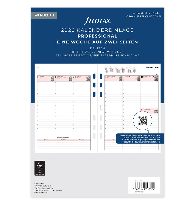 Filofax Pocket Professional 2023 | 1 Woche Auf 2 Seiten | Deutschsprachiger Terminkalender