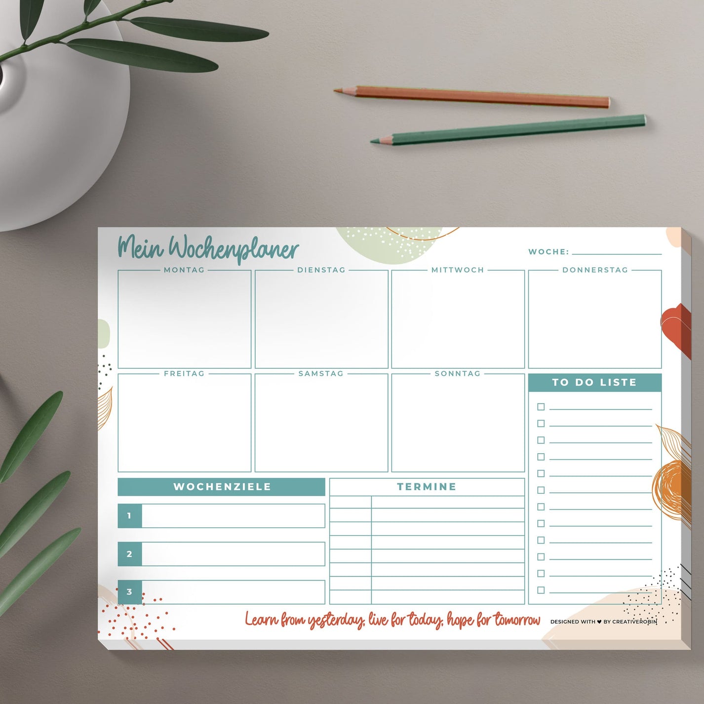 Wochenplaner Block Bunt - Abreißbarer Kalender Für Aufgaben & Termine