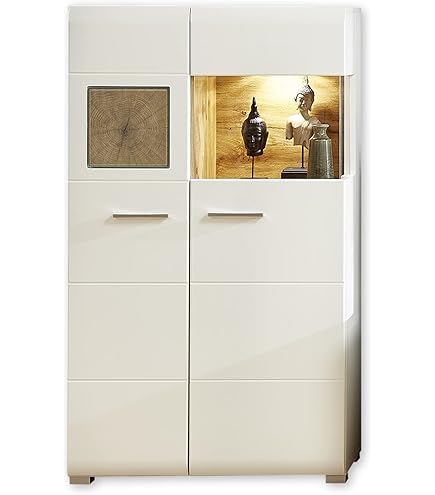 Wow, was für ein Hingucker! Die Forte LACETTI Vitrine bringt skandinavisches Flair in dein Wohnzimmer. Mit 200,5cm Höhe und 90,1cm Breite ist sie imposant, aber durch das warme Kaschmir-Beige mit Valencia-Eiche-Dekor trotzdem total gemütlich. Die zwei Türen geben den Blick frei auf deine schönsten Stücke - ob Erinnerungen, Bücher oder Deko. Die abgerundeten Kanten sehen nicht nur elegant aus, sondern sind auch super für Familien mit Kindern. Perfekt fürs Wohnzimmer oder Esszimmer, um Ordnung zu schaffen und gleichzeitig Stil zu beweisen. Aus stabilem Holzwerkstoff, der jahrelang hält. Ein Möbelstück, das garantiert Komplimente gibt!