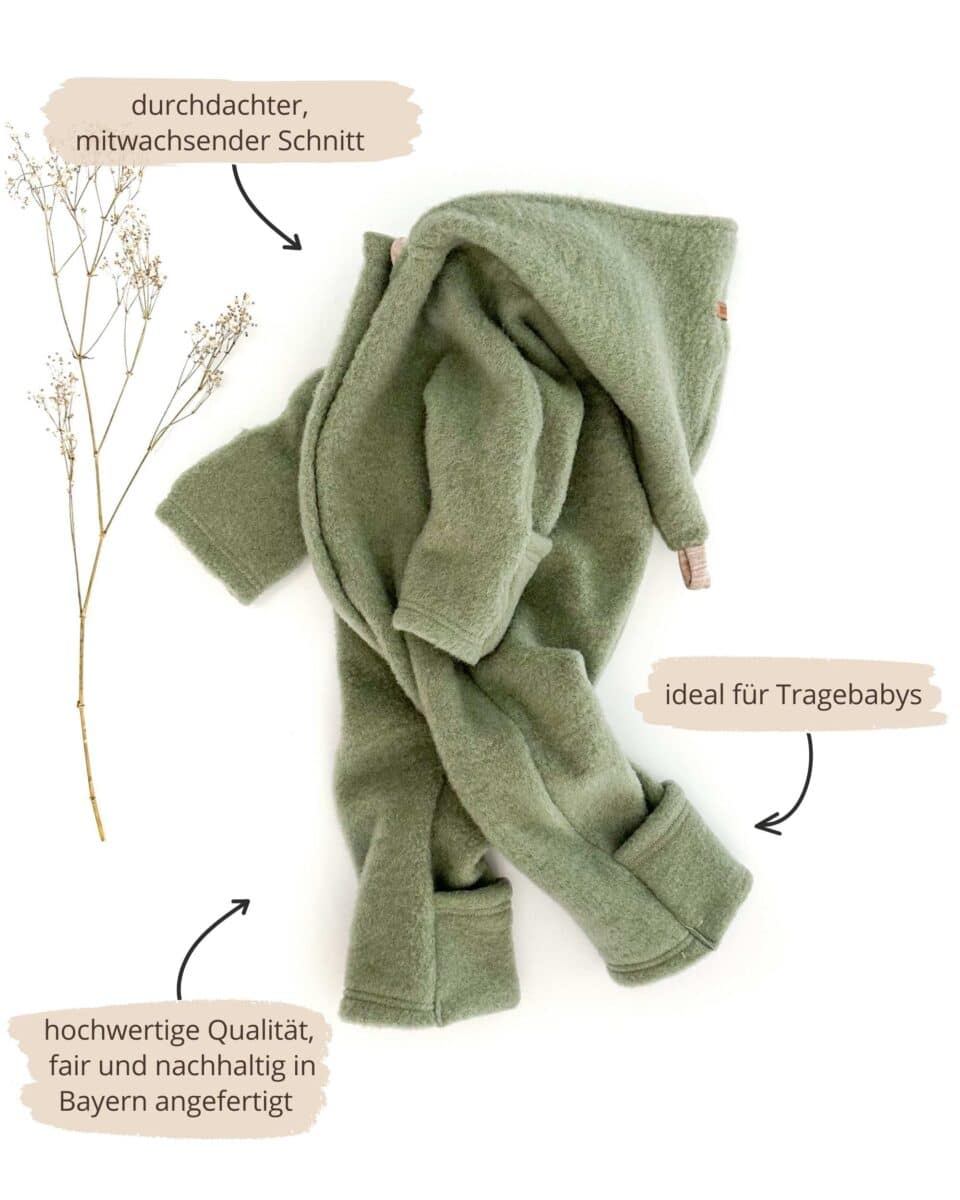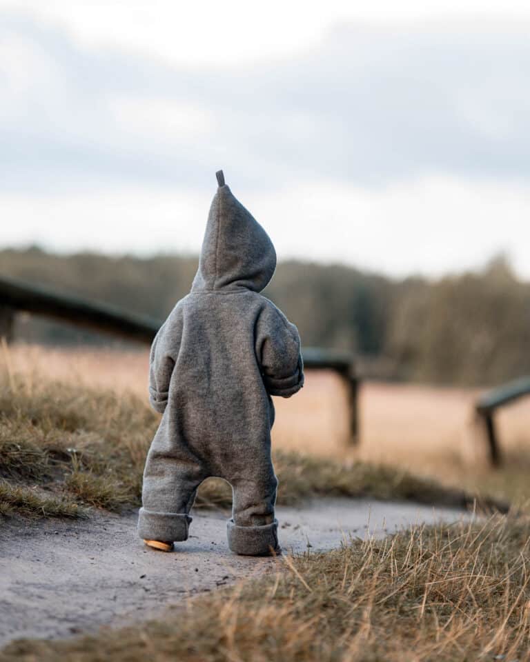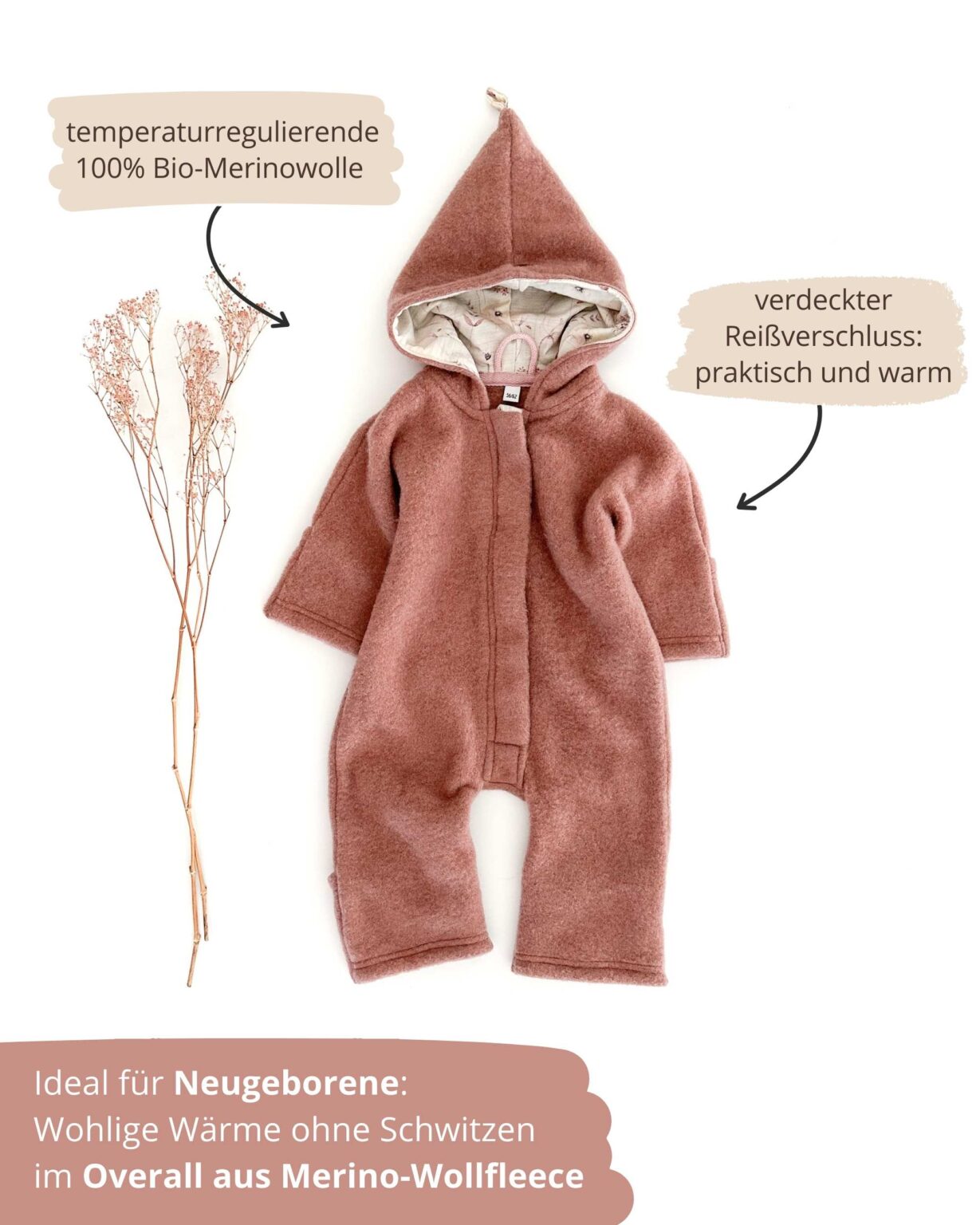 Dieser maximo Baby-Overall aus 100% Wolle wärmt dein Kleines perfekt an kalten Tagen! Der weiche Wollfleece kombiniert mit Baumwolljersey-Futter sorgt für maximalen Kuschelfaktor. \\n\\nDer schräge Reißverschluss mit Kinnschutz macht das An- und Ausziehen super einfach und schützt die zarte Babyhaut. Die süße Zipfelkapuze mit Pompon komplettiert den niedlichen Look. \\n\\nGOTS-zertifiziert und in Deutschland hergestellt - da weißt du, dass Qualität und Nachhaltigkeit stimmen. Atmungsaktiv, kuschelig weich und absolut hautfreundlich. \\n\\nDer ideale Begleiter für Spaziergänge, Kindergarten oder einfach zum Kuscheln zu Hause. Dein Baby wird sich rundum wohl fühlen!