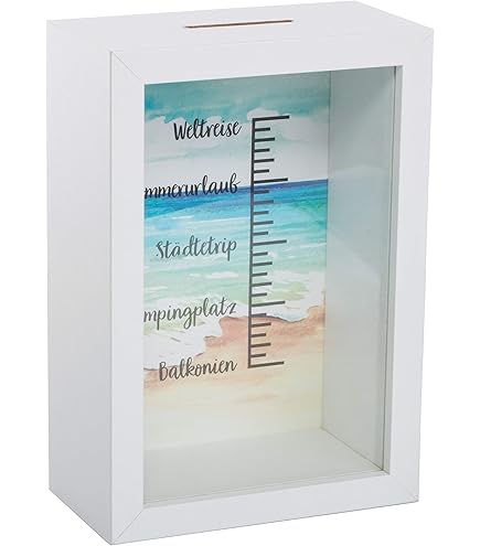 Spare für deine Traumreise mit dieser niedlichen Koffer-Spardose! Die MC-Trend Spardose aus Keramik hat ein wunderschönes Weltkarten-Design mit dem Aufdruck 'Travel The World' und ist perfekt, um für den nächsten Urlaub zu sparen. Mit 14x13x6cm ist sie handlich und passt super auf jeden Schreibtisch oder Regal. Enthält einen Schlüssel und Verschluss auf der Unterseite - so kannst du sie immer wieder verwenden. Ideal für Münzen und Geldscheine! Auch ein tolles Geldgeschenk für Geburtstage, Weihnachten oder zur Reise-Einweihung. Aus nachhaltiger Keramik ohne Plastik, leicht abwaschbar und langlebig. Ob für Weltreise, Kurzurlaub oder Camping - diese Spardose motiviert jeden Tag ein bisschen mehr zu sparen!