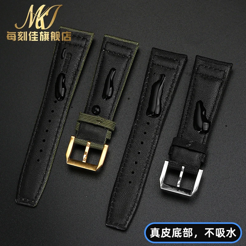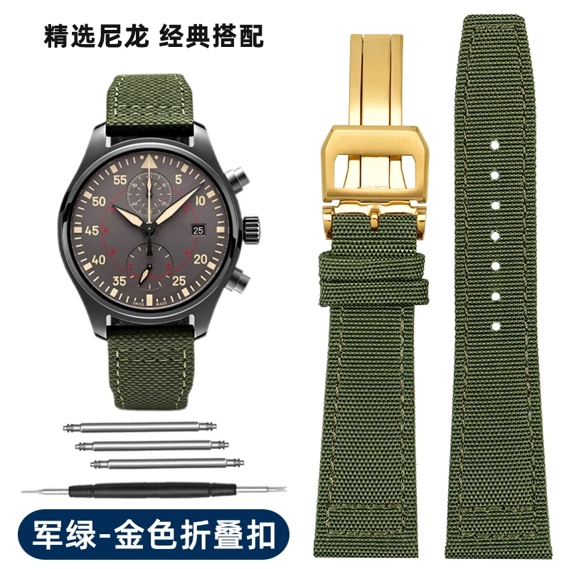 Wovenleather Uhrenarmband Für IWC Portugieser Chronograph - 22mm Blau/Schwarz Mit Klappschnalle
