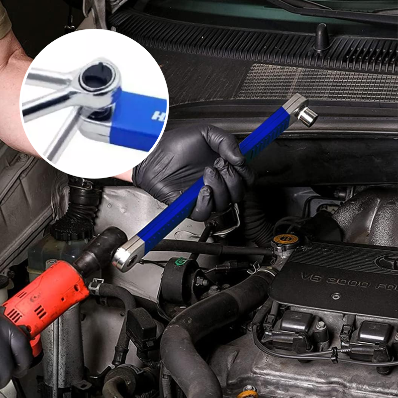 Schrauben in engen Räumen? Kein Problem mehr mit diesem genialen Offset-Verlängerungsschlüssel! Das Set mit 39 cm langem Schlüssel und drei Adaptern (1/2\, 1/4\ und 3/8\) gibt dir Zugang zu Schrauben, die bisher unerreichbar schienen. Aus hochfestem Kohlenstoffstahl gefertigt, bricht oder verbiegt das Teil nicht mal bei härtestem Einsatz. Das ergonomische Design liegt perfekt in der Hand und gibt dir auch in beengten Verhältnissen genug Hebelkraft. Perfekt für Auto-Reparaturen - ob Servolenkung, Generator oder Klimakompressor - dieser Schlüssel kommt überall hin, wo normale Werkzeuge versagen. Die mitgelieferten Adapter machen das Set kompatibel mit fast allen handelsüblichen Steckschlüsseln. Die blaue Oberfläche sieht nicht nur cool aus, sondern ist auch robust gegen Rost und Abnutzung. Ob Profi-Mechaniker oder Hobby-Schrauber - dieses Werkzeug wird schnell zu deinem unverzichtbaren Begleiter in der Werkstatt. Endlich Schluss mit fummeligen Reparaturen und schmerzenden Knöcheln! Hol dir den Zugang zu den unmöglichsten Ecken deines Fahrzeugs oder Maschinen.