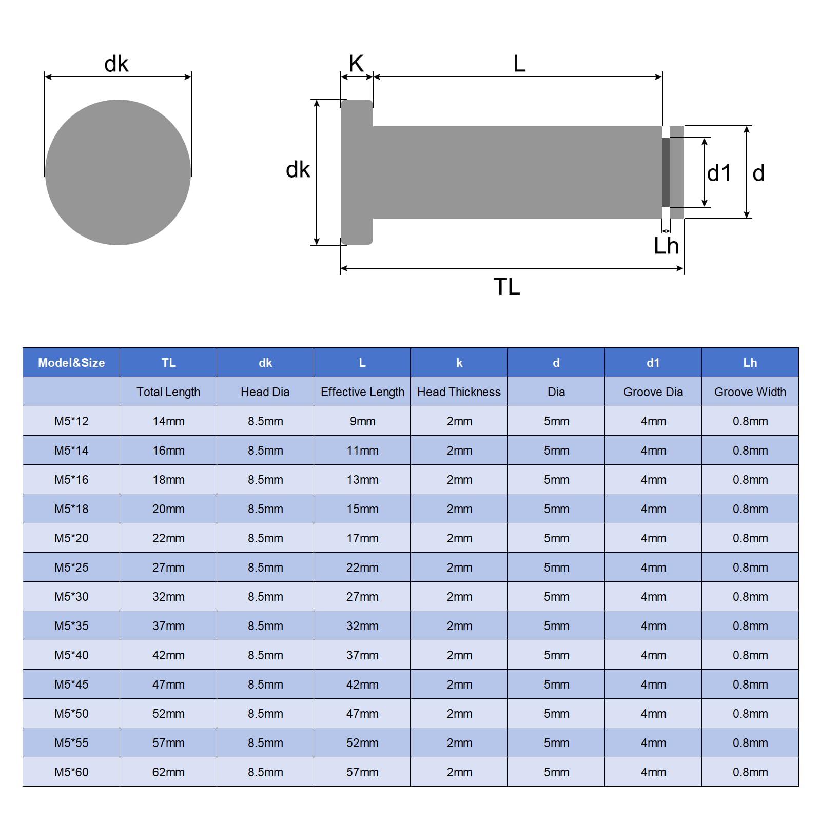 12 Stück M8 X 16mm Edelstahl Zylinderstift - 304 Edelstahl Parallelstift Silber