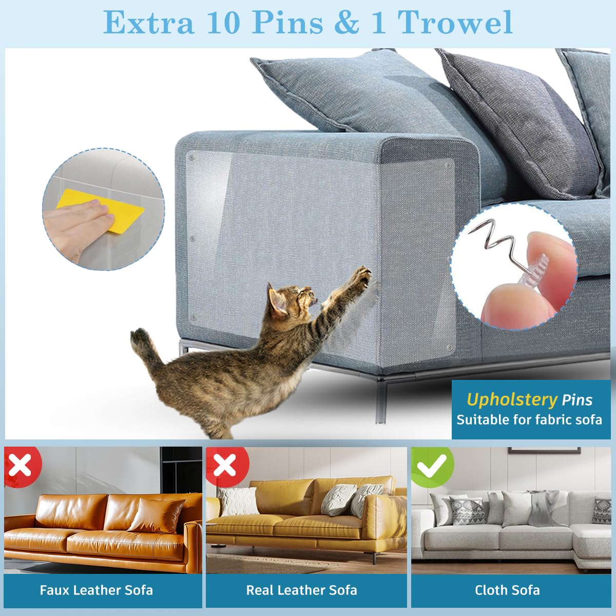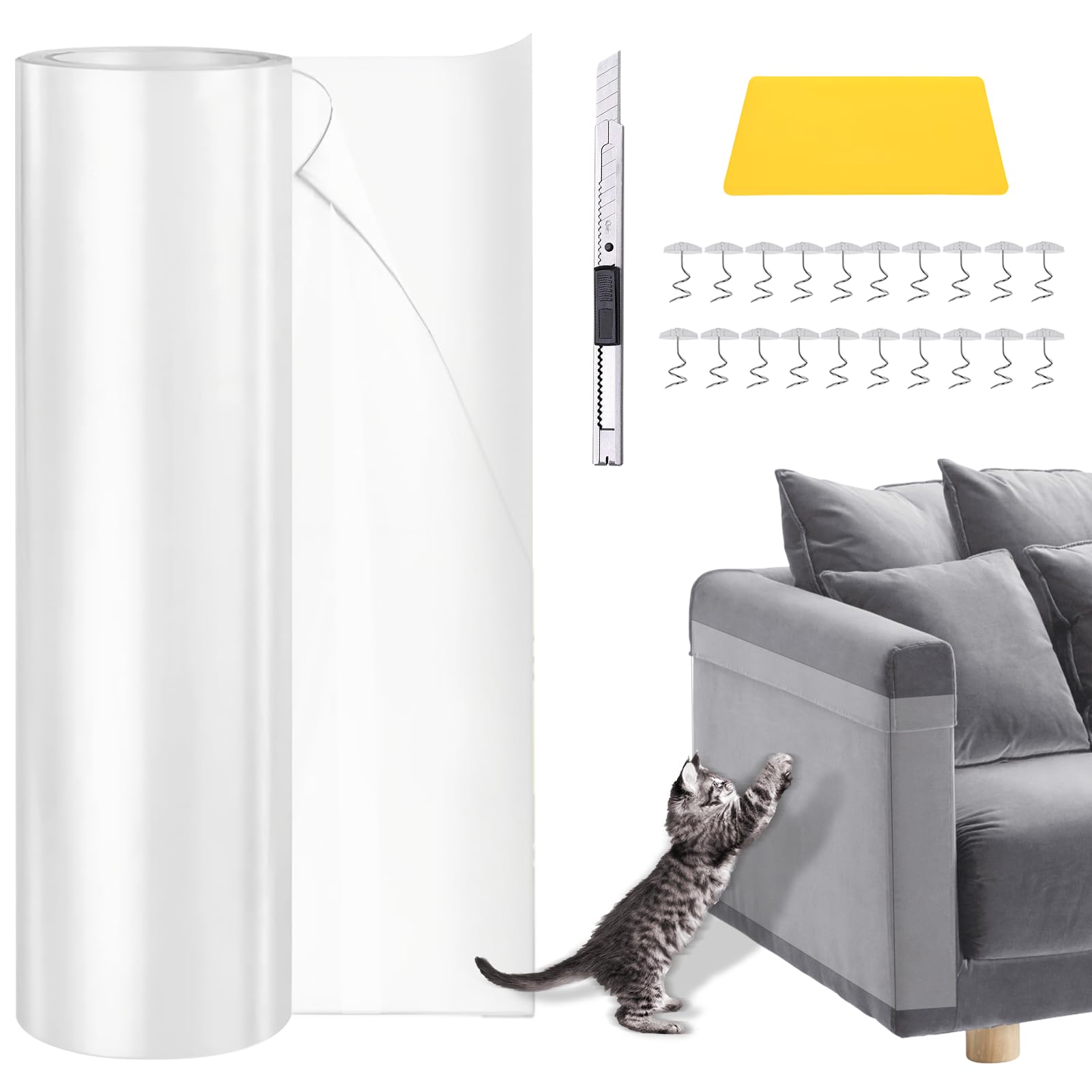 Deine Katze kratzt am Sofa? Diese transparente Kratzschutzfolie rettet deine Möbel! Mit 5m Länge und 45cm Breite hast du genug Material für Sofa, Stühle, Türen oder Wände.\\n\\nAus robustem PVC-Material - dick genug um Krallen standzuhalten, aber flexibel genug um sich jeder Möbelform anzupassen. Vollständig transparent - du siehst sie kaum, aber sie schützt effektiv!\\n\\nEinfach zuschneiden, Schutzfolie abziehen und aufkleben. Hält sicher, lässt sich aber rückstandslos wieder entfernen. Auch wasserdicht und leicht zu reinigen.\\n\\nPerfekt um die Lieblings-Kratzstellen deiner Katze zu schützen. Reduziert das Kratzverhalten und bewahrt deine Möbel vor teuren Reparaturen. Endlich harmonisches Zusammenleben mit deinem Stubentiger!